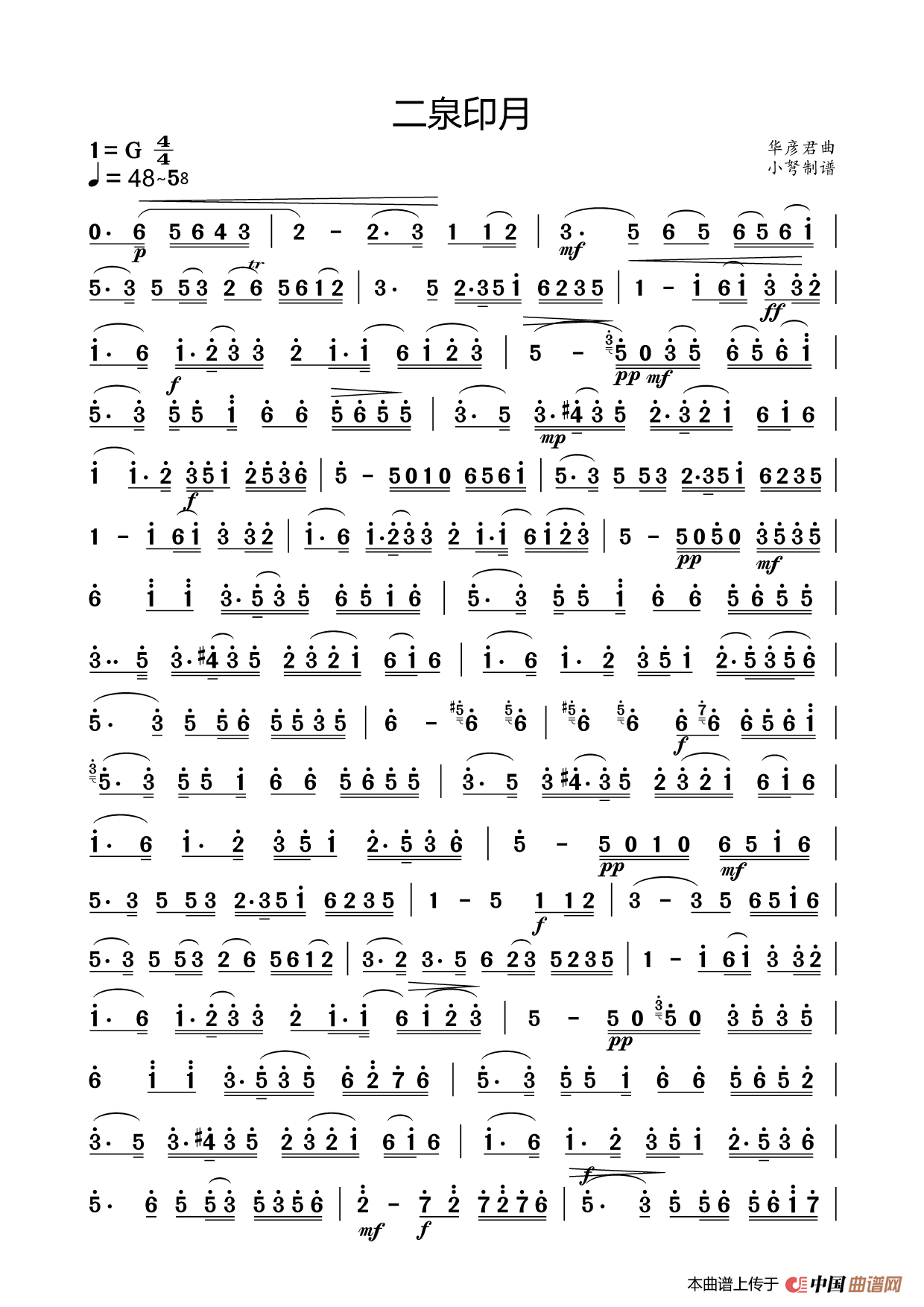 二泉印月(主旋简谱)
