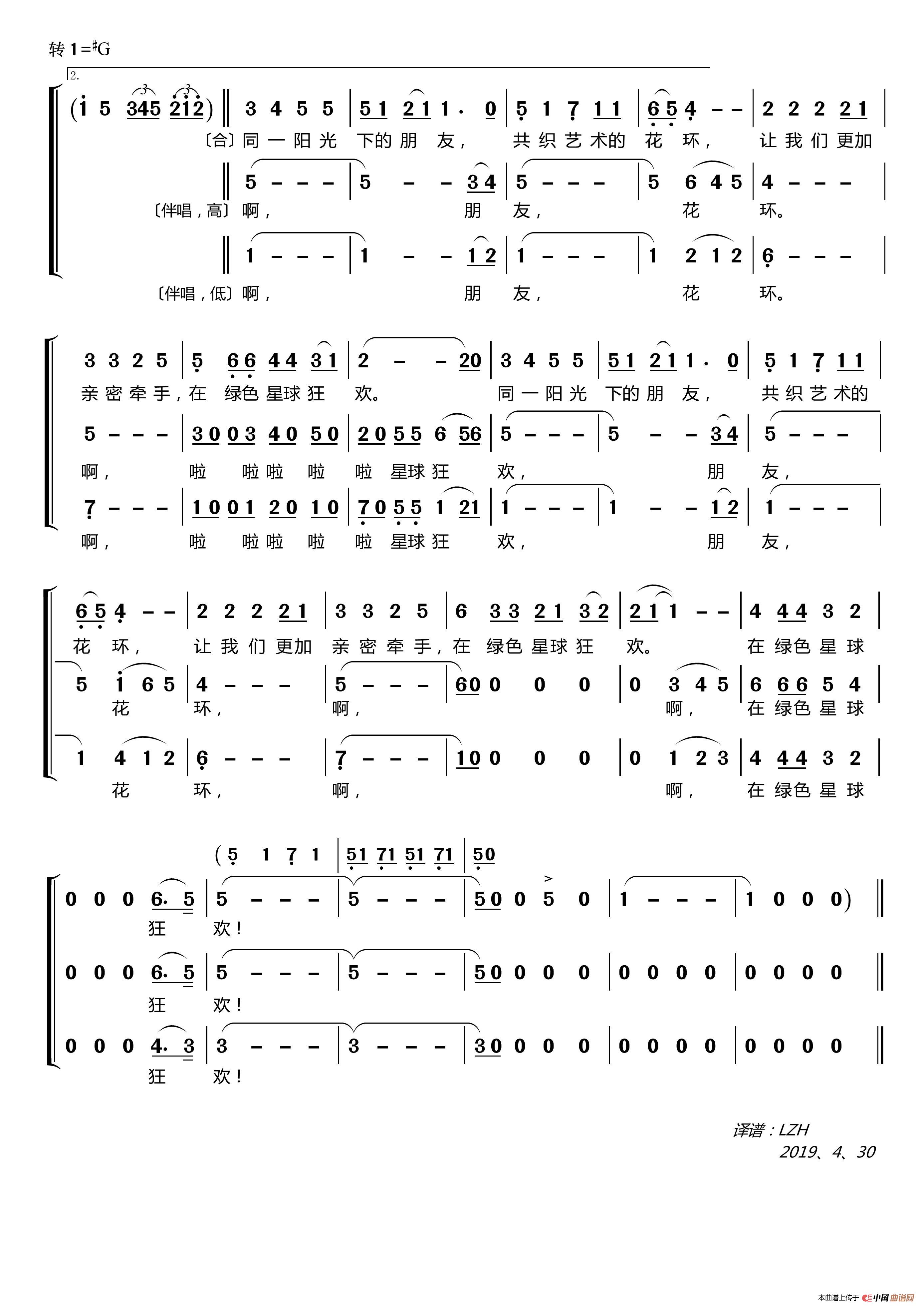 关于《地球是个美丽的圆》曲谱的评论