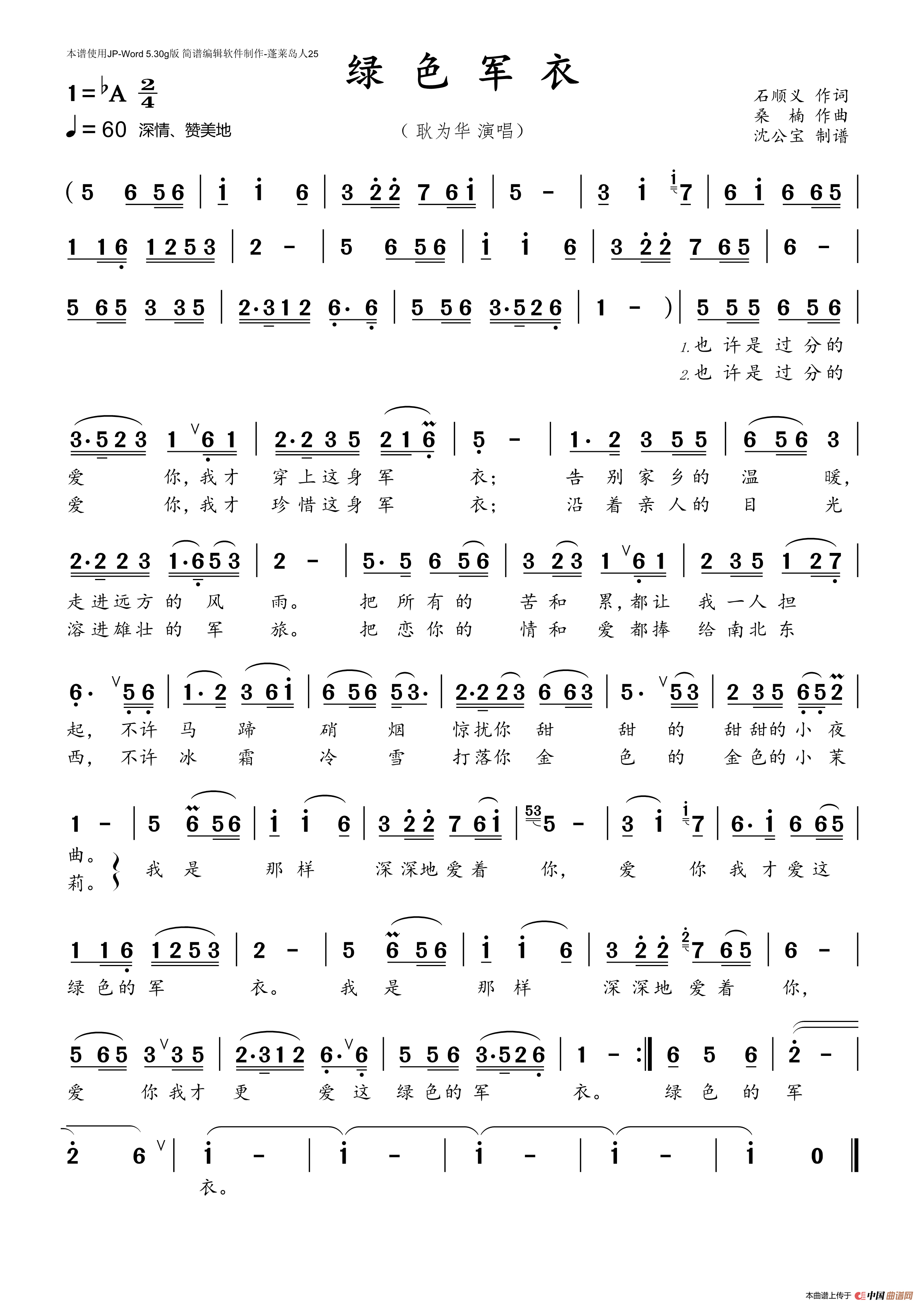 关于《绿色军衣》曲谱的评论
