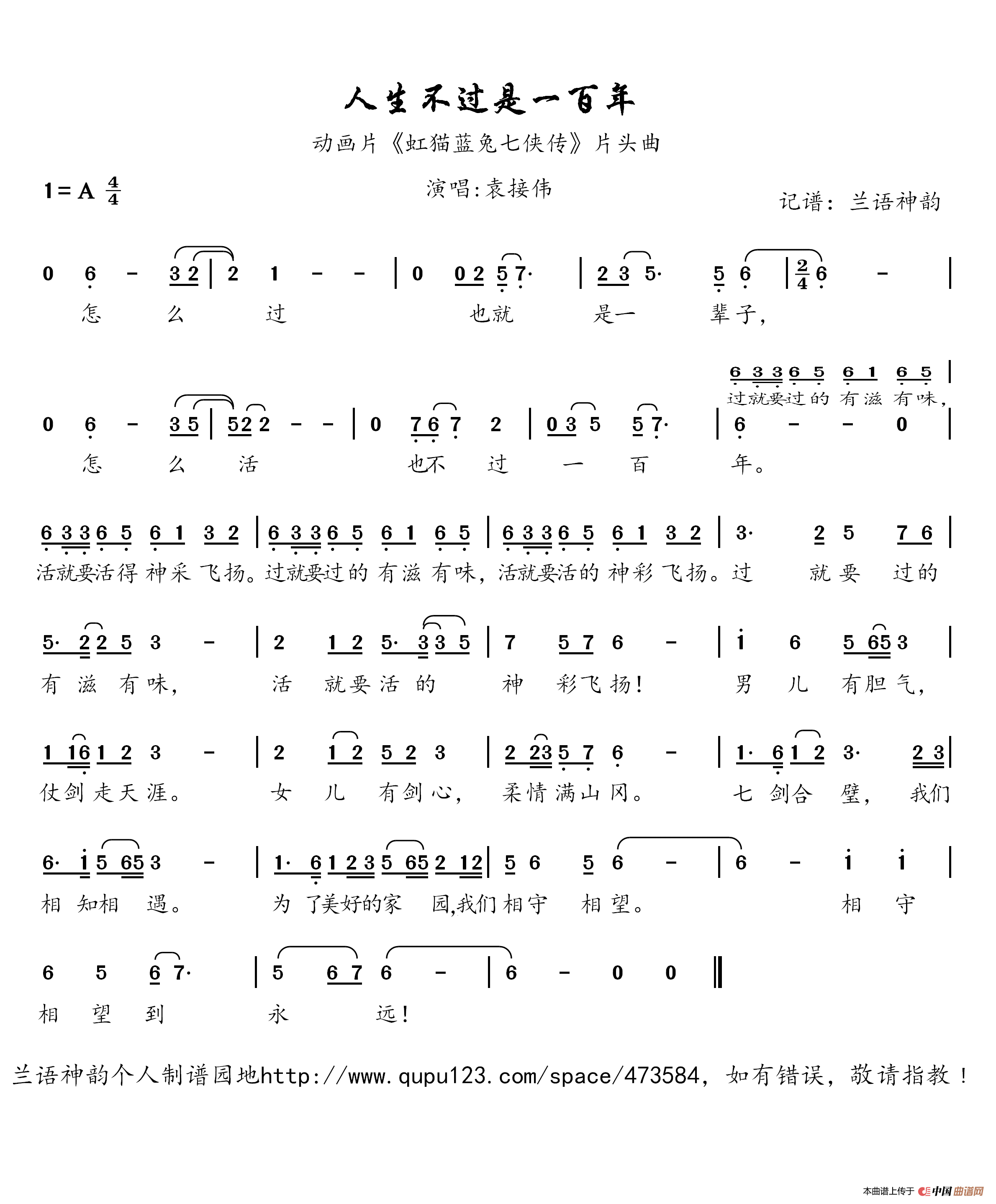 人生不过是一百年(动画片《虹猫蓝兔七侠传》片头曲)