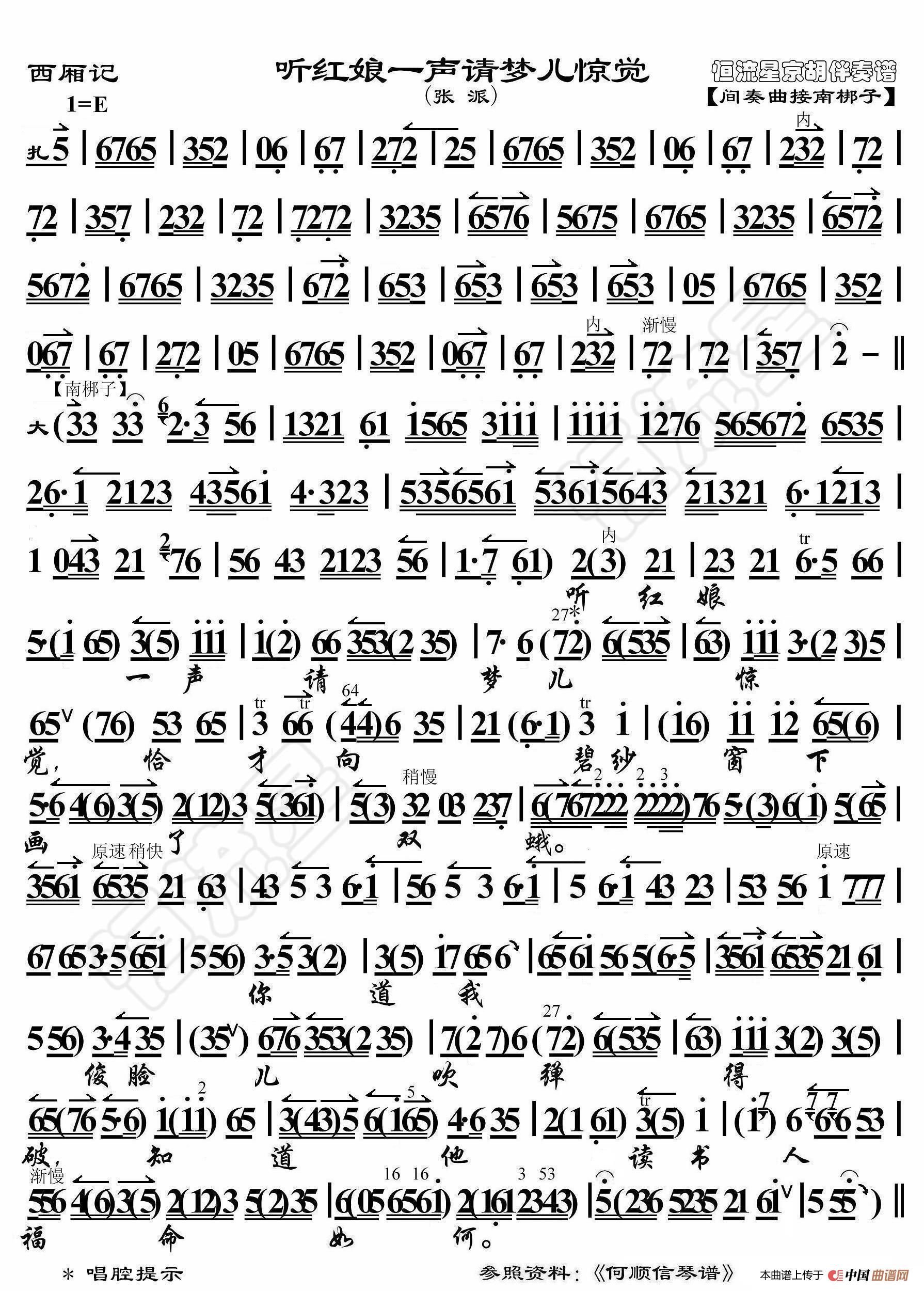 西厢记·听红娘一声请梦儿惊觉(京胡伴奏谱)