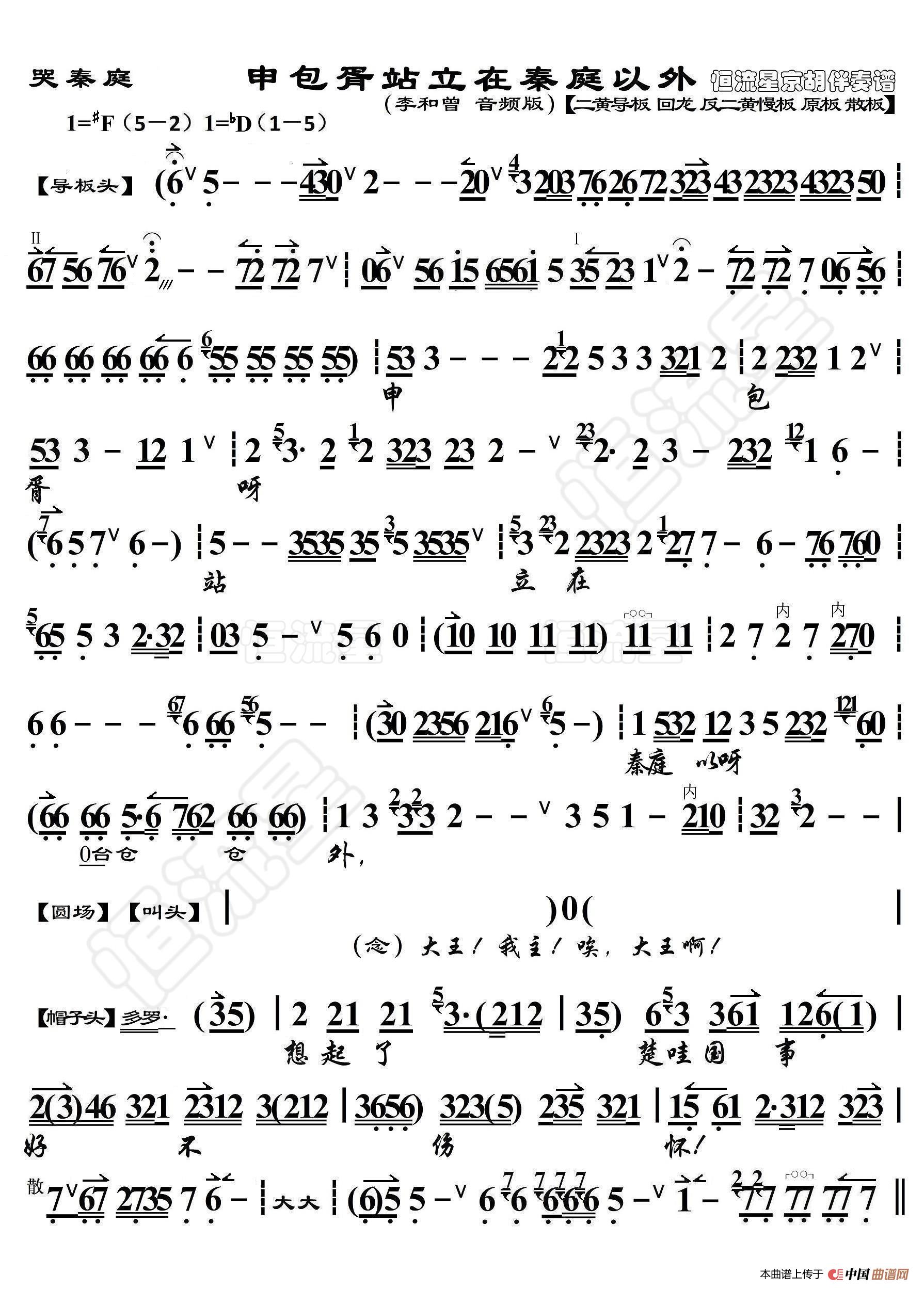 哭秦庭·申包胥站立在秦庭以外(京胡伴奏谱)