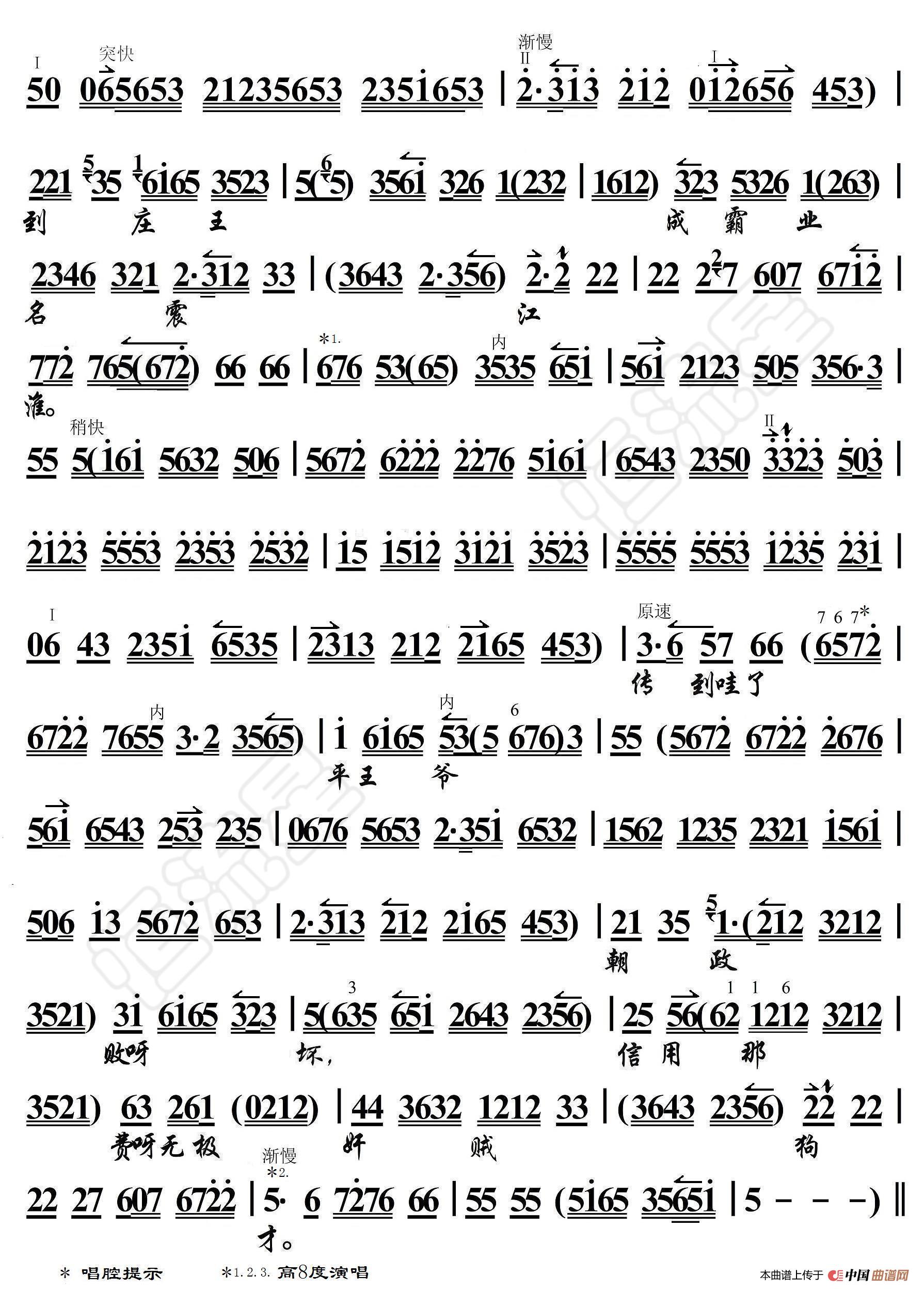 关于《哭秦庭·申包胥站立在秦庭以外》曲谱的评论