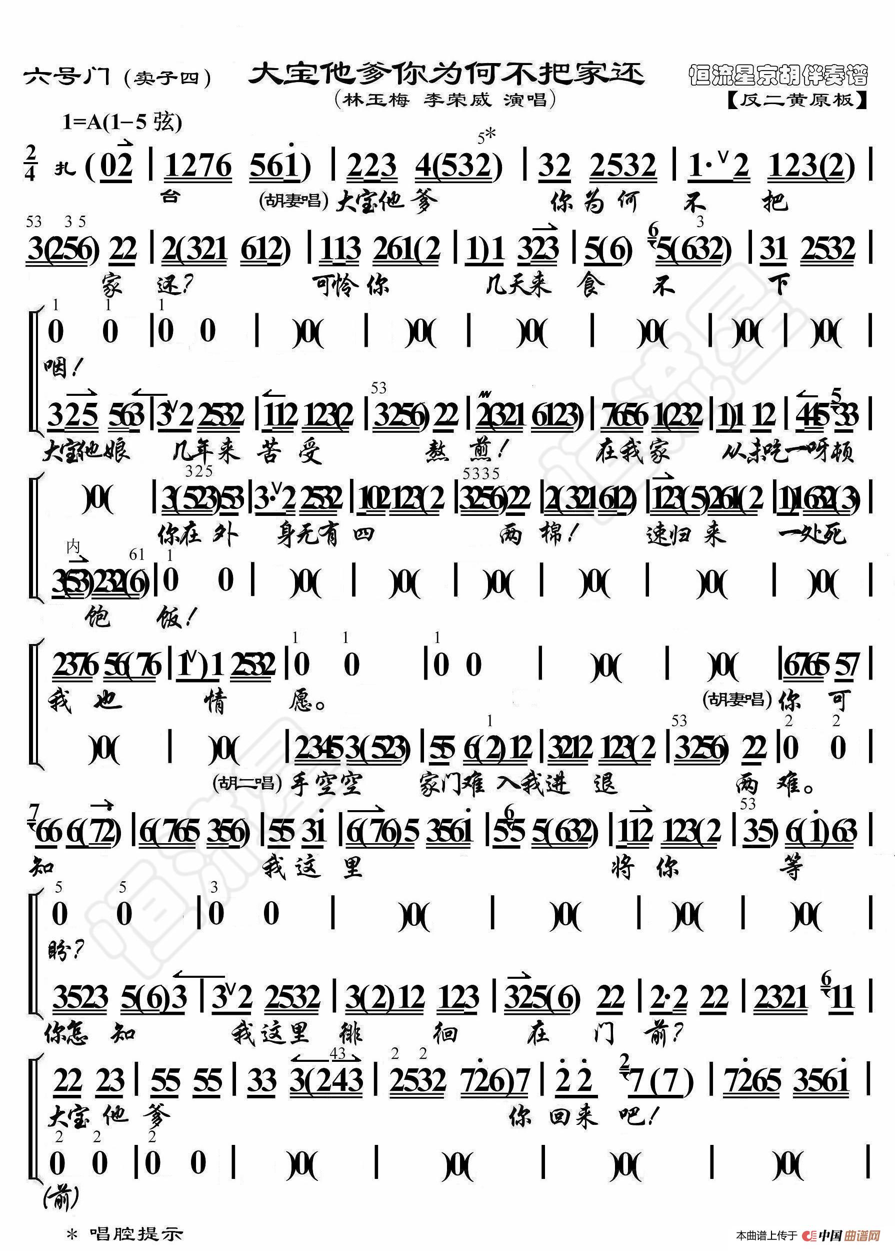 六号门·大宝他爹你为何不把家还(京胡伴奏谱)