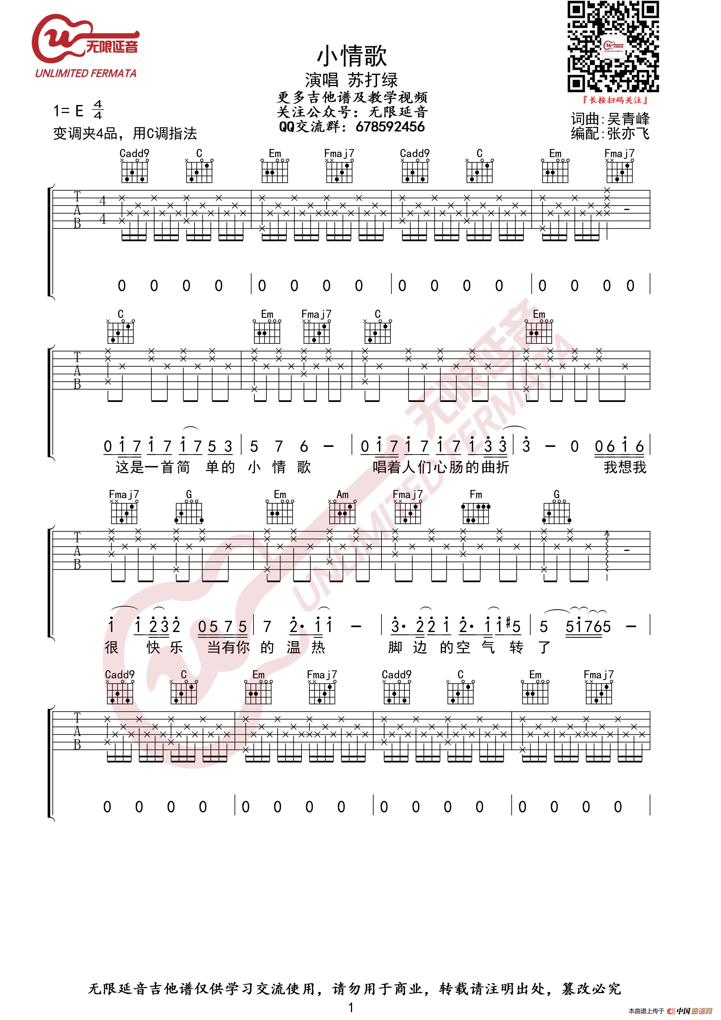 苏打绿 小情歌 吉他谱(无限延音编配)
