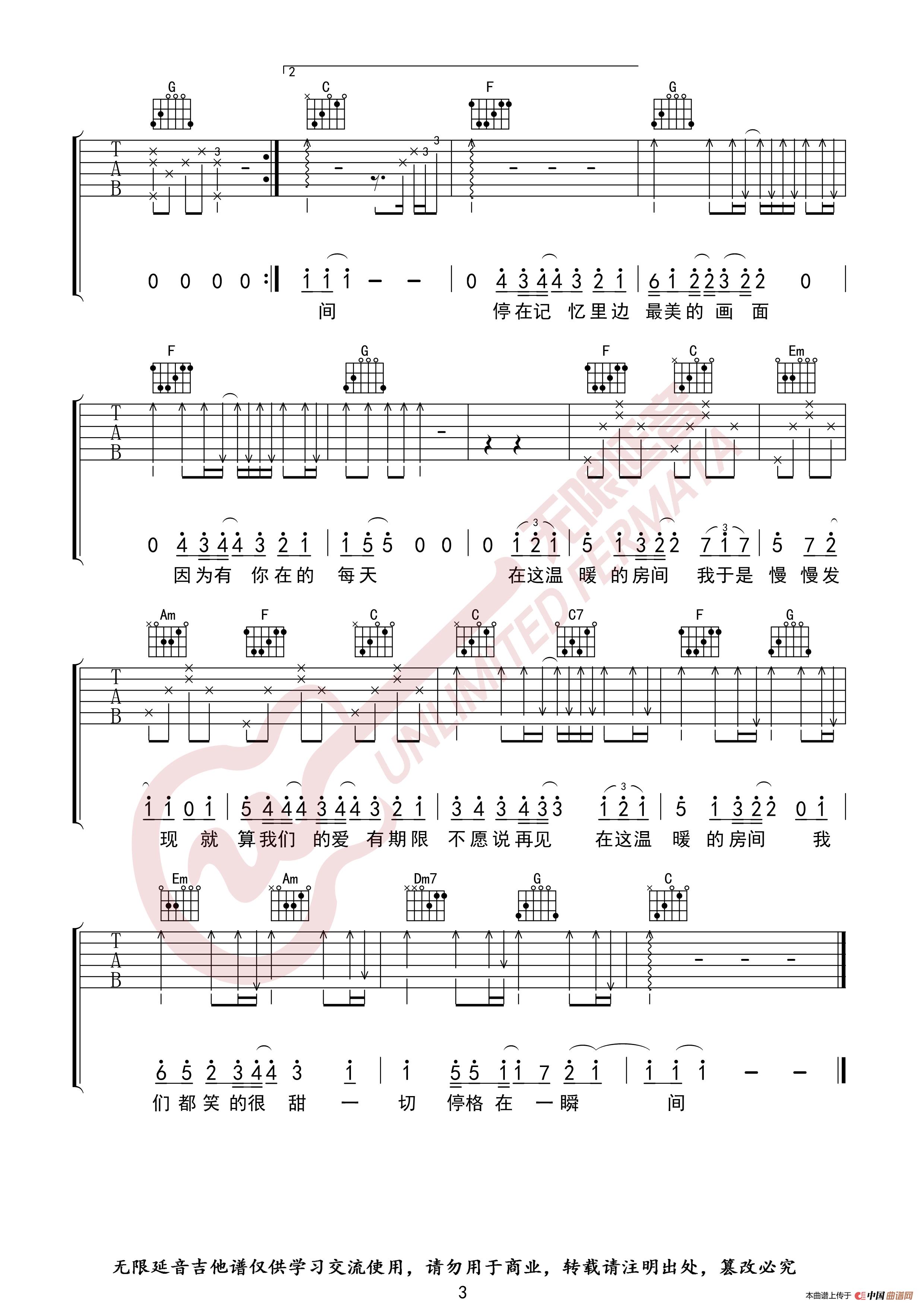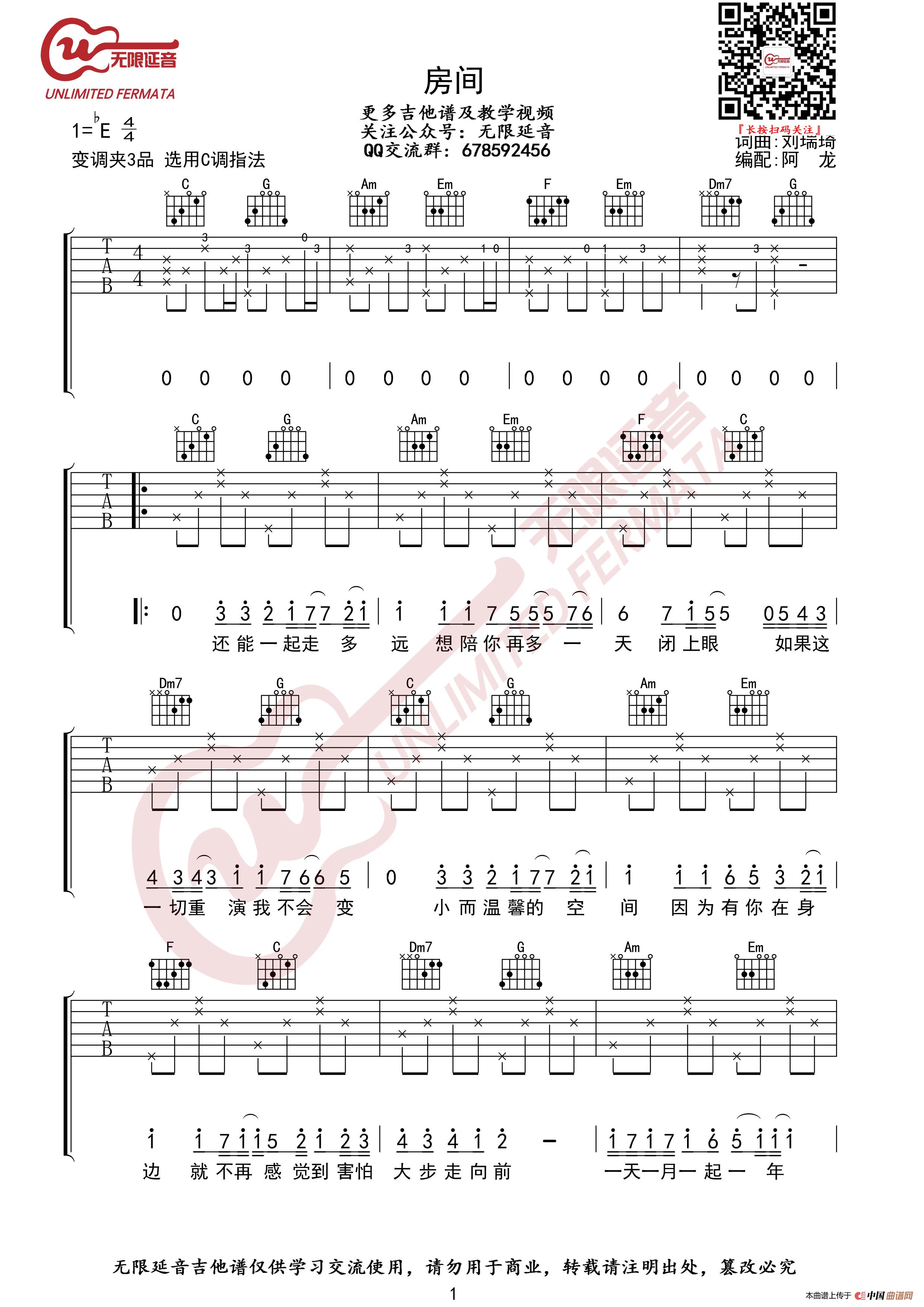 刘瑞琪 房间 吉他谱(无限延音编配)