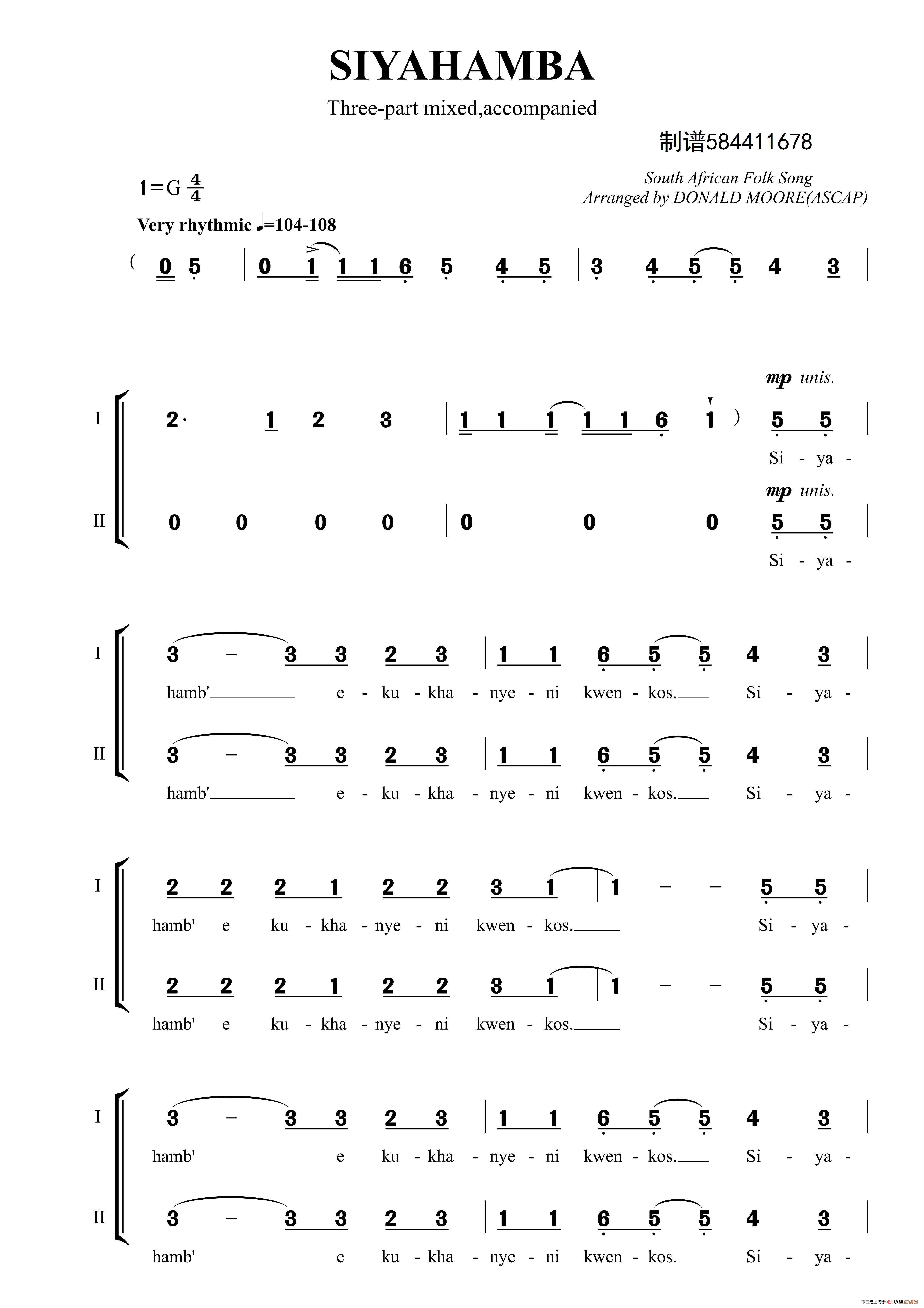 关于《SIYAHAMBA三部合唱简谱》曲谱的评论