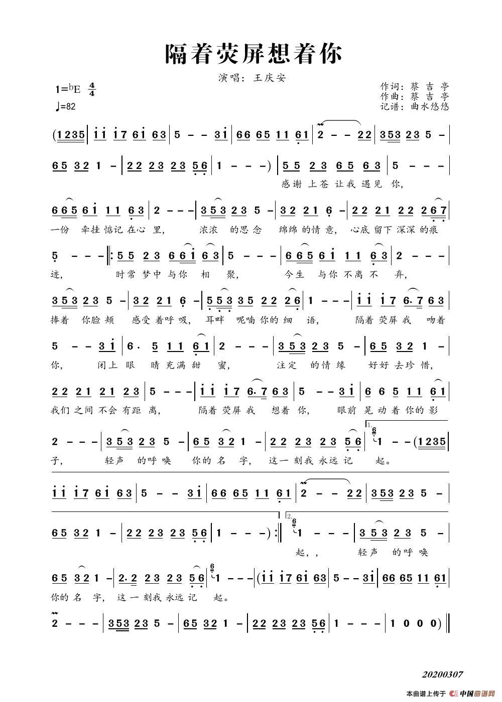 关于《隔着荧屏想着你》曲谱的评论