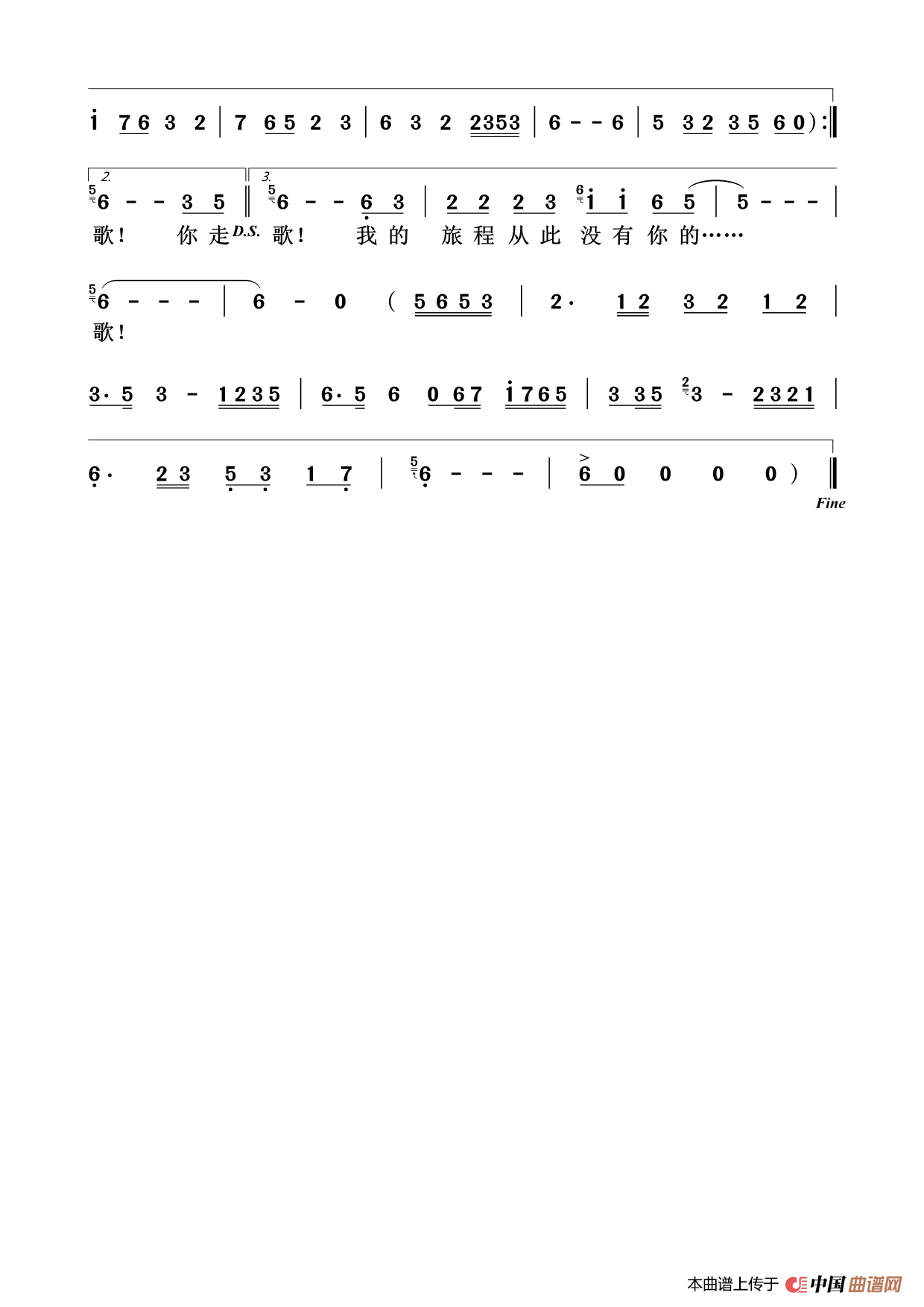关于《你走吧》曲谱的评论