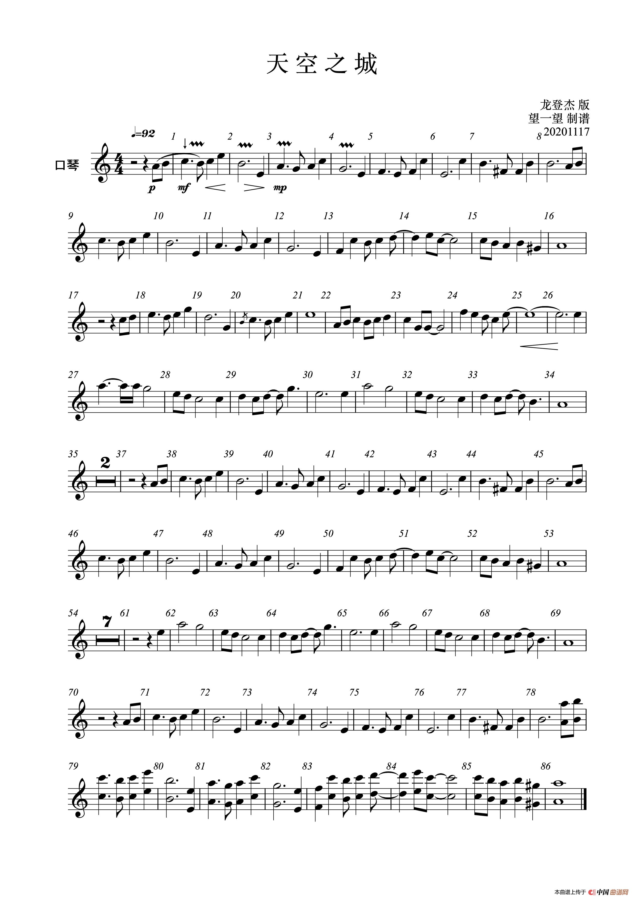 20-0 天空之城 -C- 首调简谱(半音阶口琴)