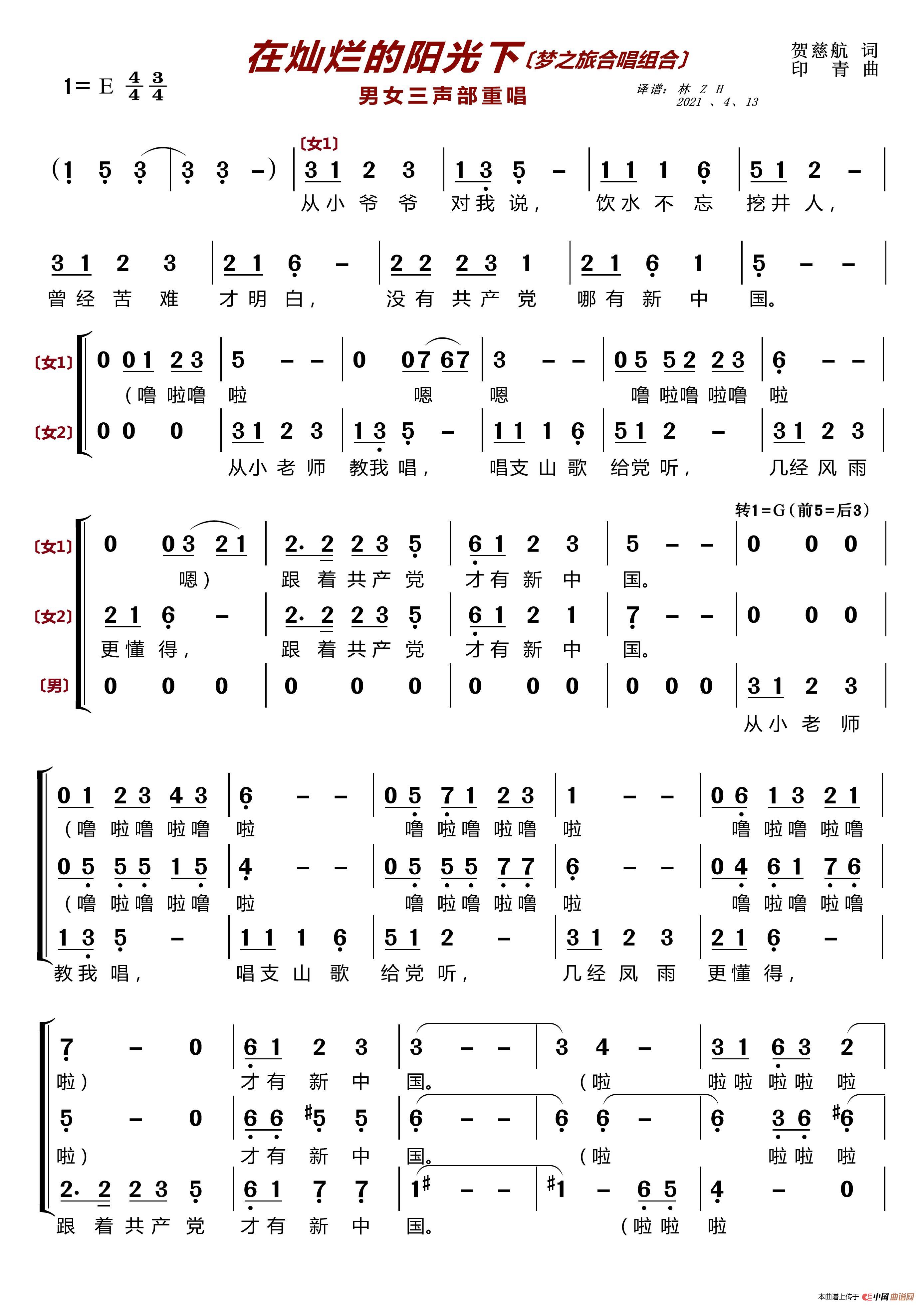 在灿烂的阳光下〔梦之旅合唱组合〕(男女三声部重唱)