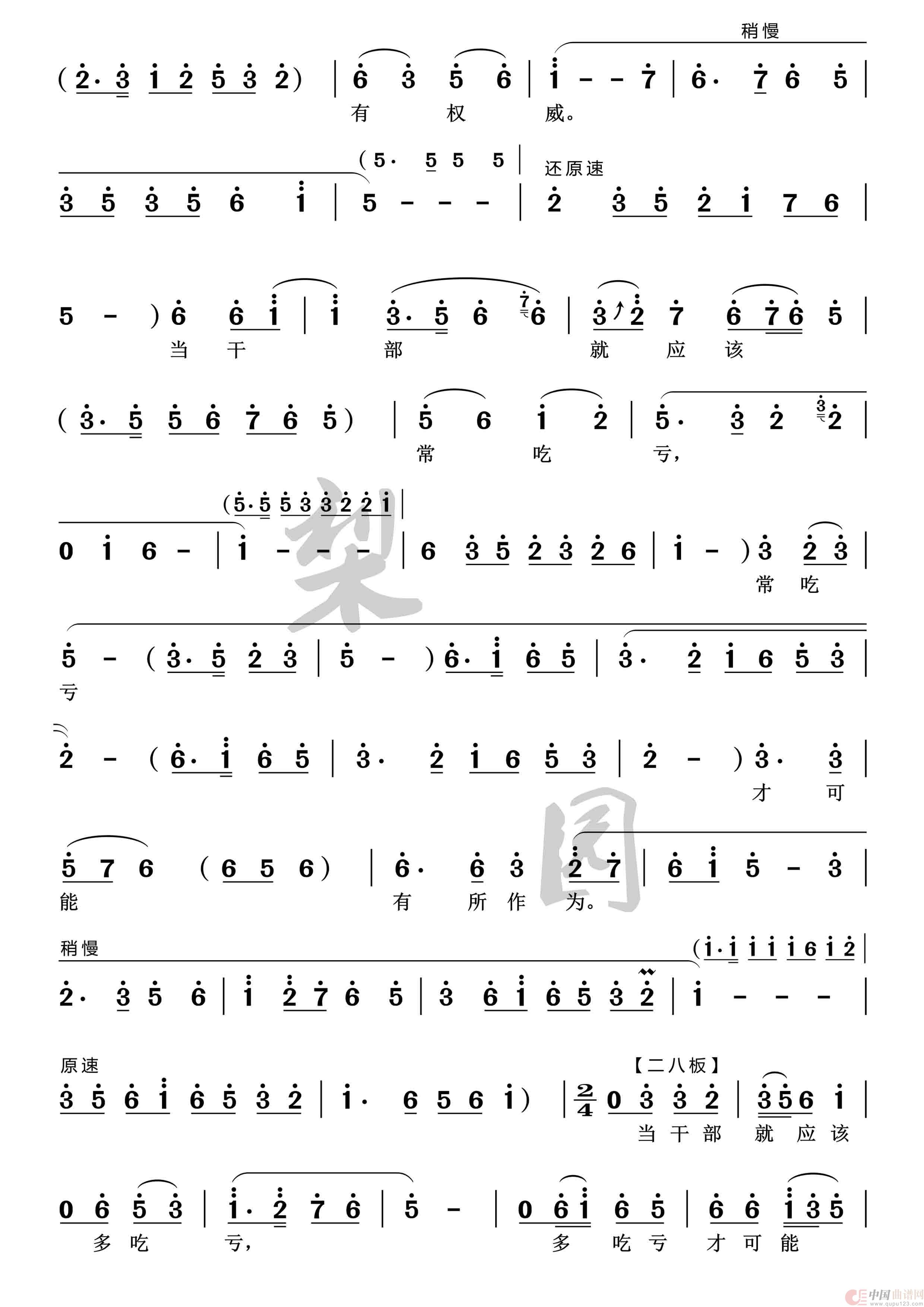 关于《当干部就应该能吃亏》曲谱的评论