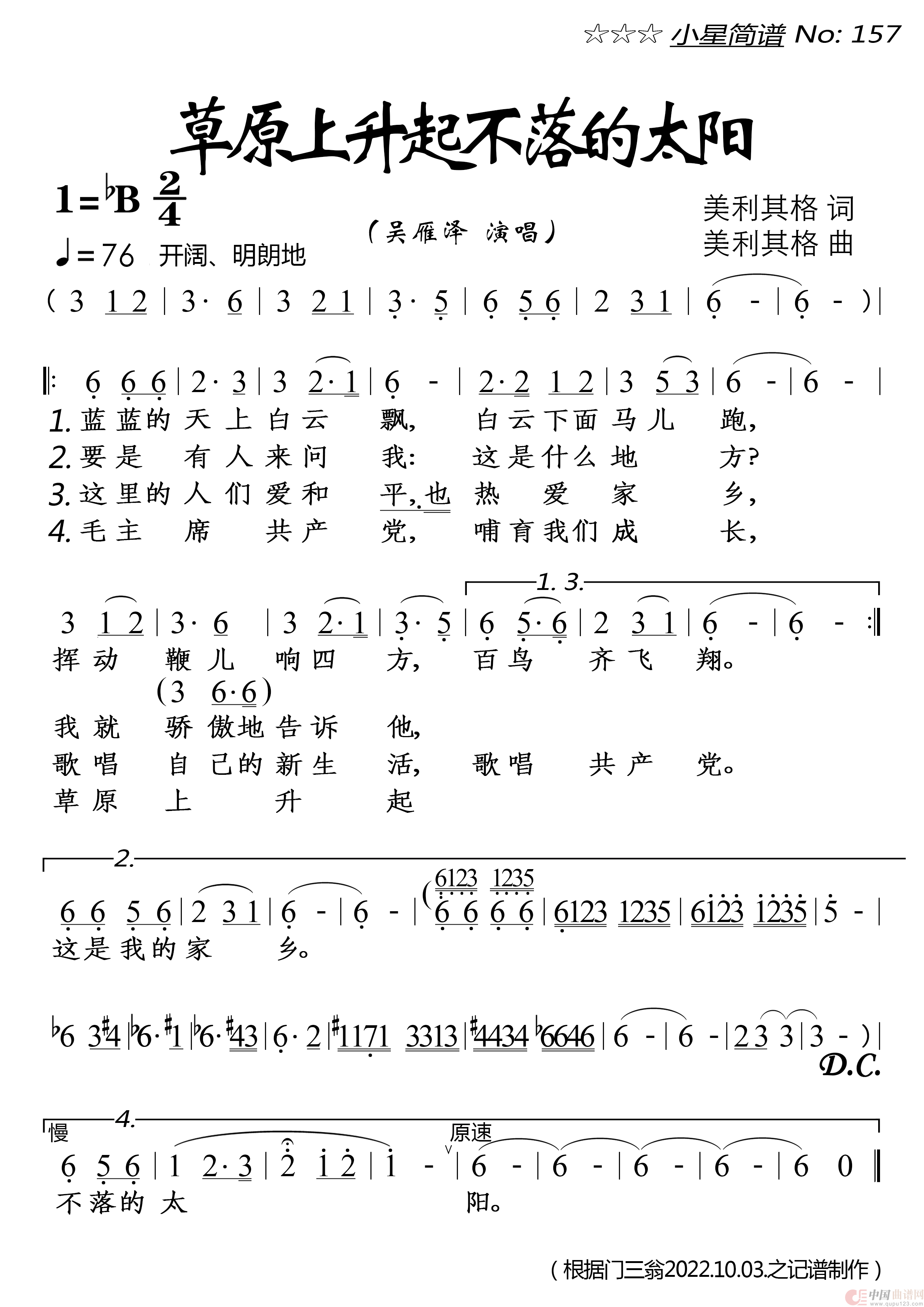 《草原上升起不落的太阳》是蒙古族作曲家美丽其格于1953年在中央音乐学院学习结业时的作品
