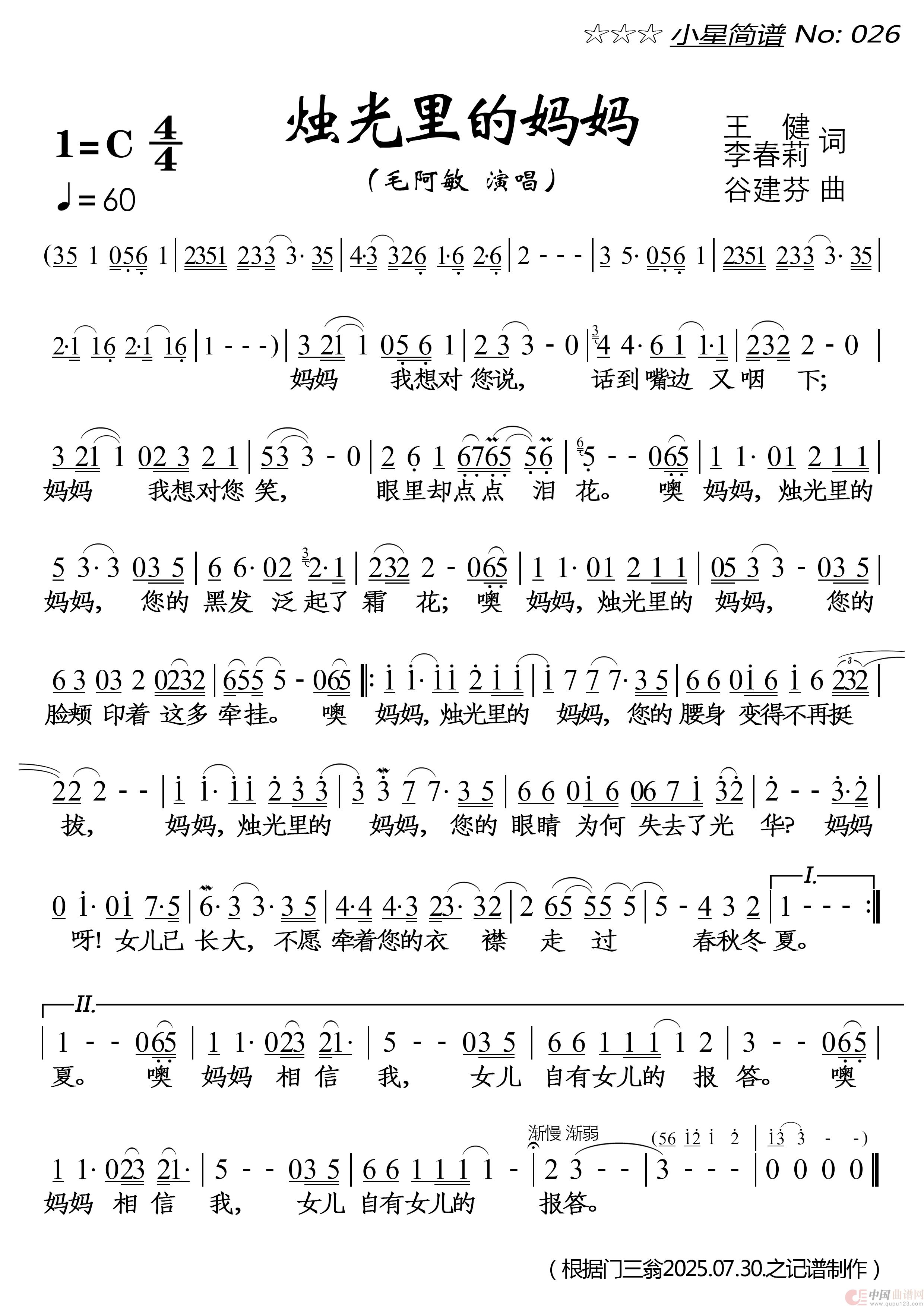 关于《烛光里的妈妈》曲谱的评论