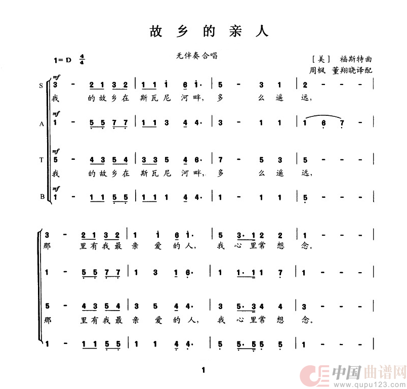 这首混声合唱曲是美国作曲家福斯特(1826-1864)为寄托自己对故乡和亲人的思念的歌曲,创作于1851年。