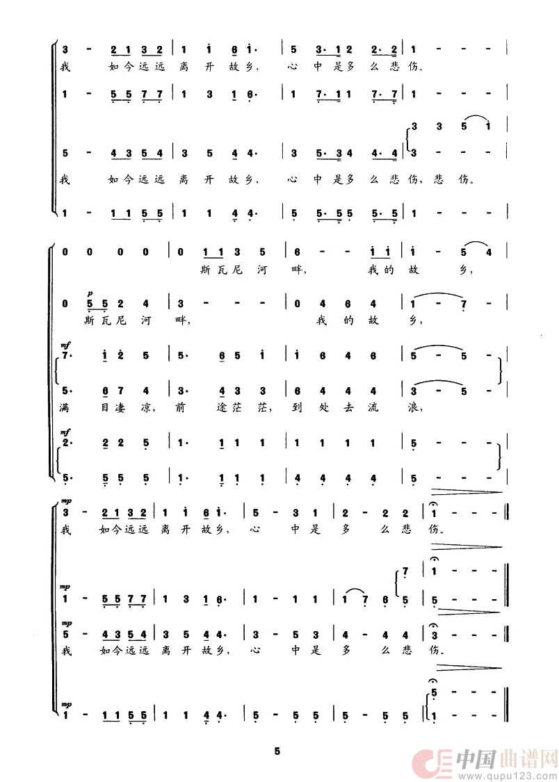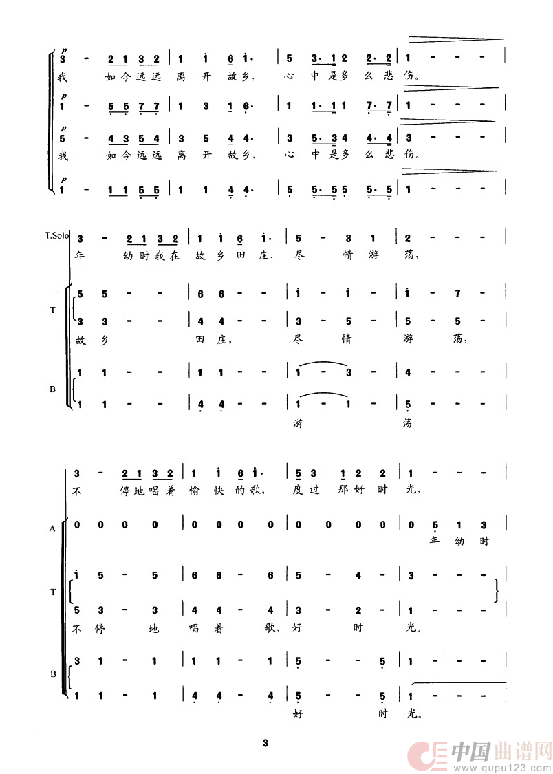 醇厚的女中、男低音声部起着伴唱与烘托作用。