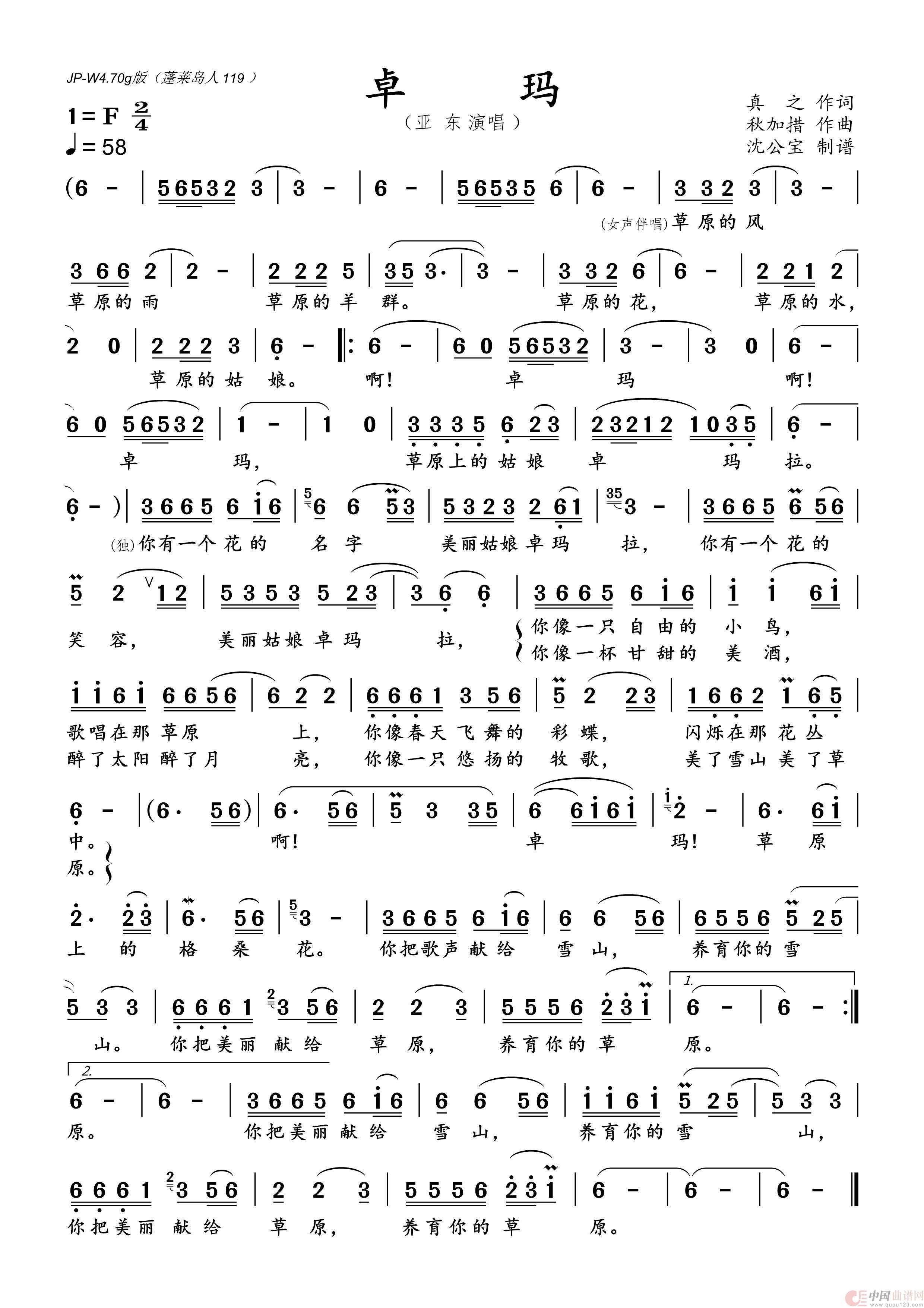 作词:真 之    作曲:秋加措   演唱(奏):亚东   来源:沈公宝 制谱   上传:普通一兵   日期:2023-05-19   浏览次数: