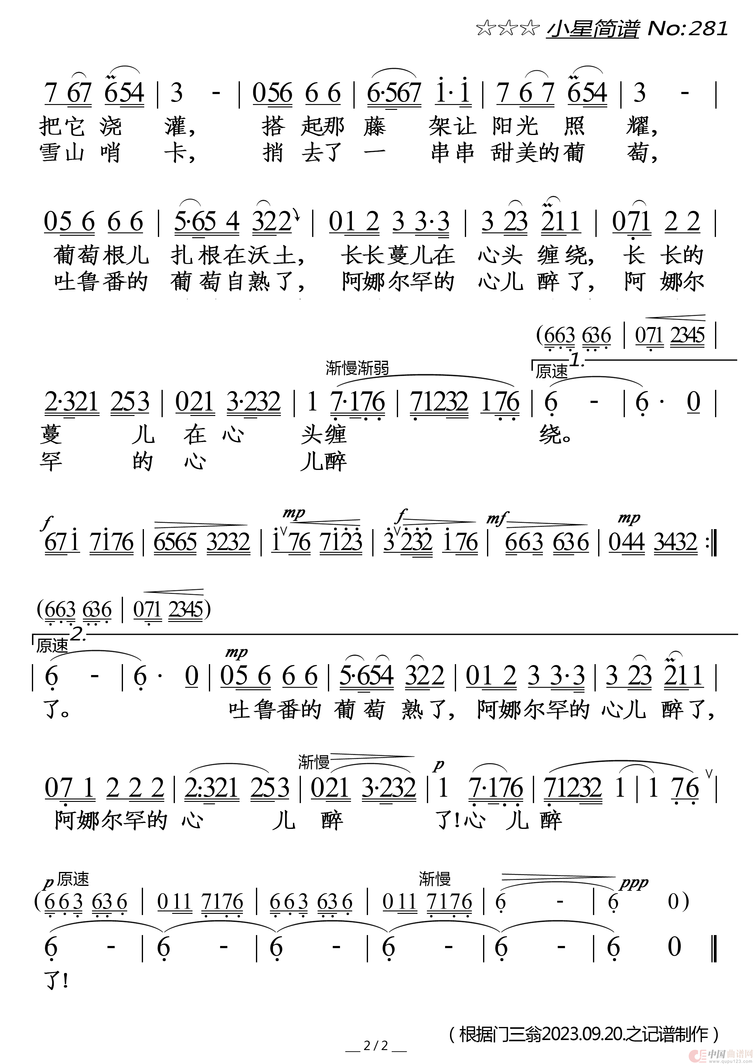 关于《吐鲁番的葡萄熟了》曲谱的评论