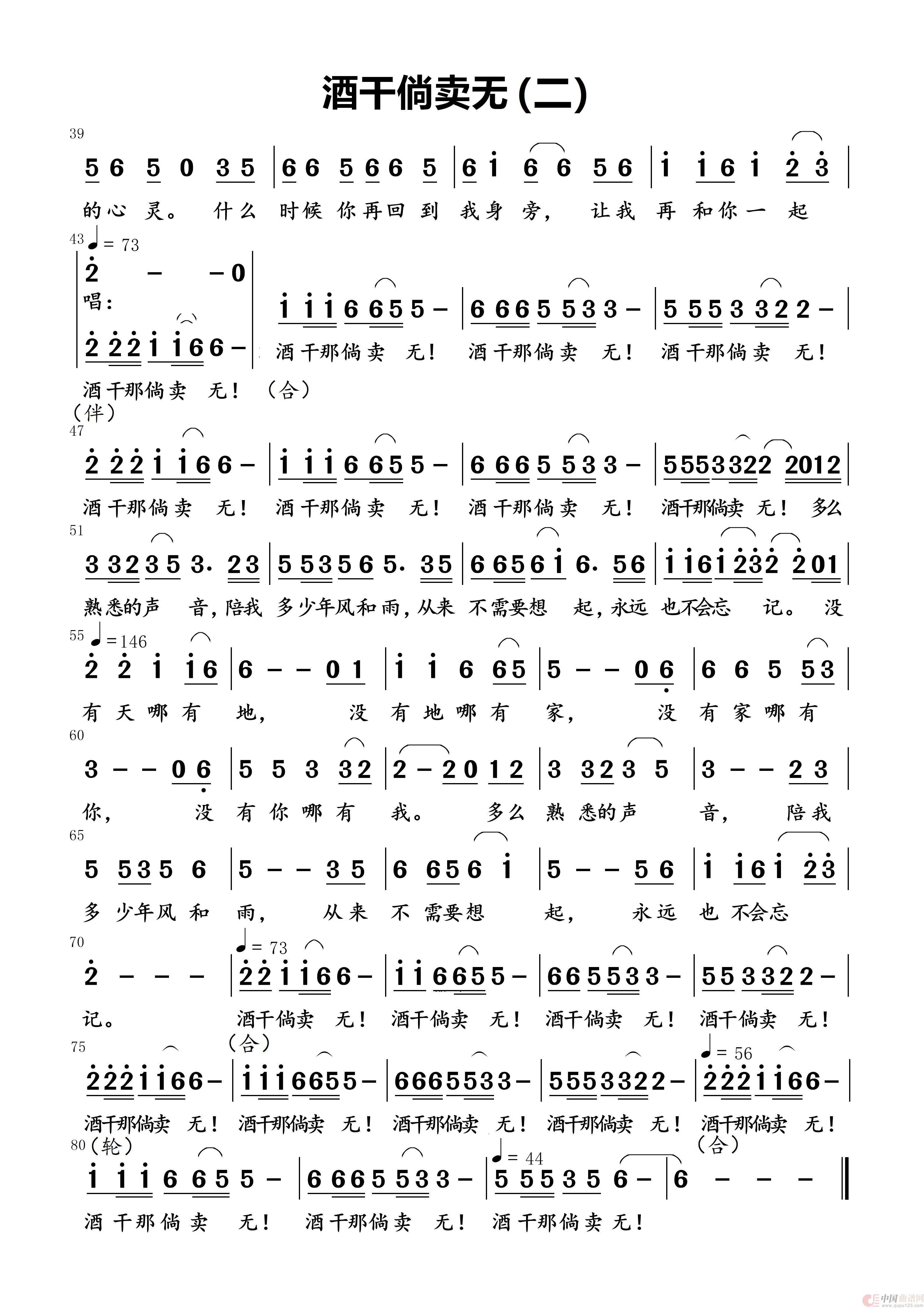 这首歌听了几十年了,百听不厌。旋律简洁,但情感至深。速度多变,故按乐器演奏的习惯(特别是鼓点特点)记谱,并在旋律中列出速度,方便于编曲键盘或电子合成器演奏。