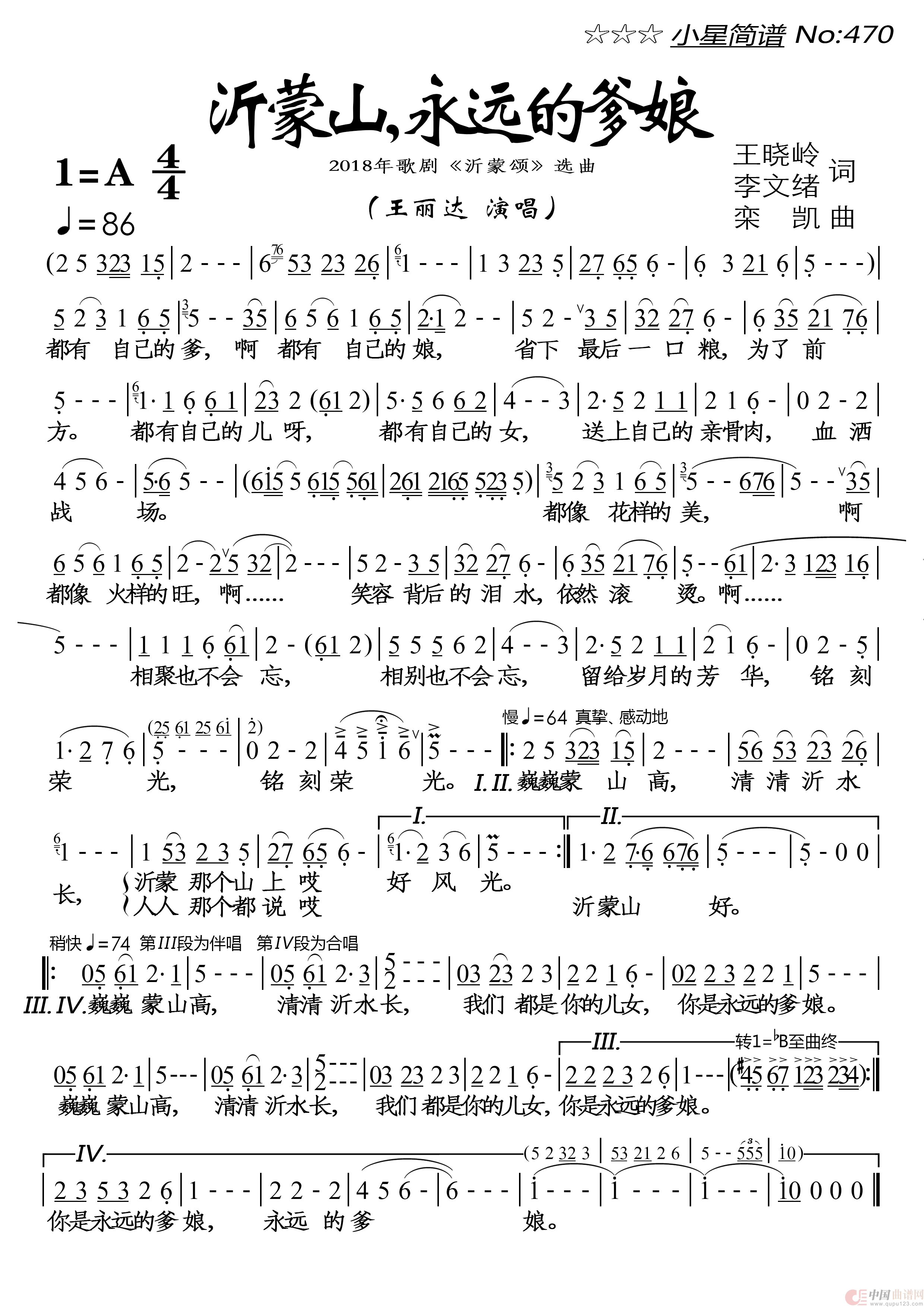 关于《沂蒙山,永远的爹娘》曲谱的评论