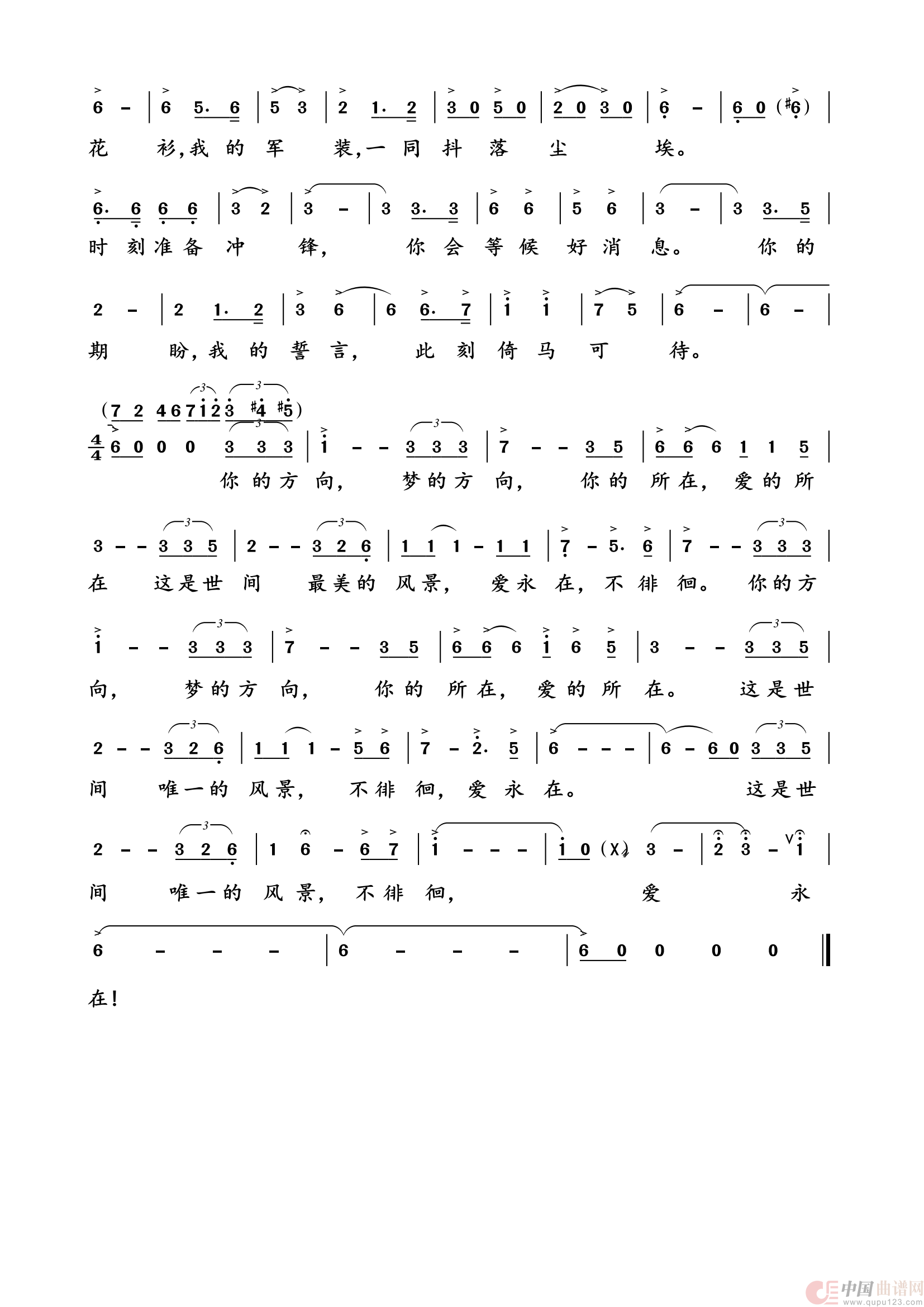 提示:在曲谱图片上单击右键,选择"图片另存为..."即可将曲谱保存到您的电脑中,打印时候可将图片插入到WORD中,调整合适大小打印即可。