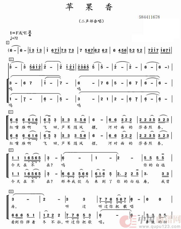 苹果香二部合唱简谱