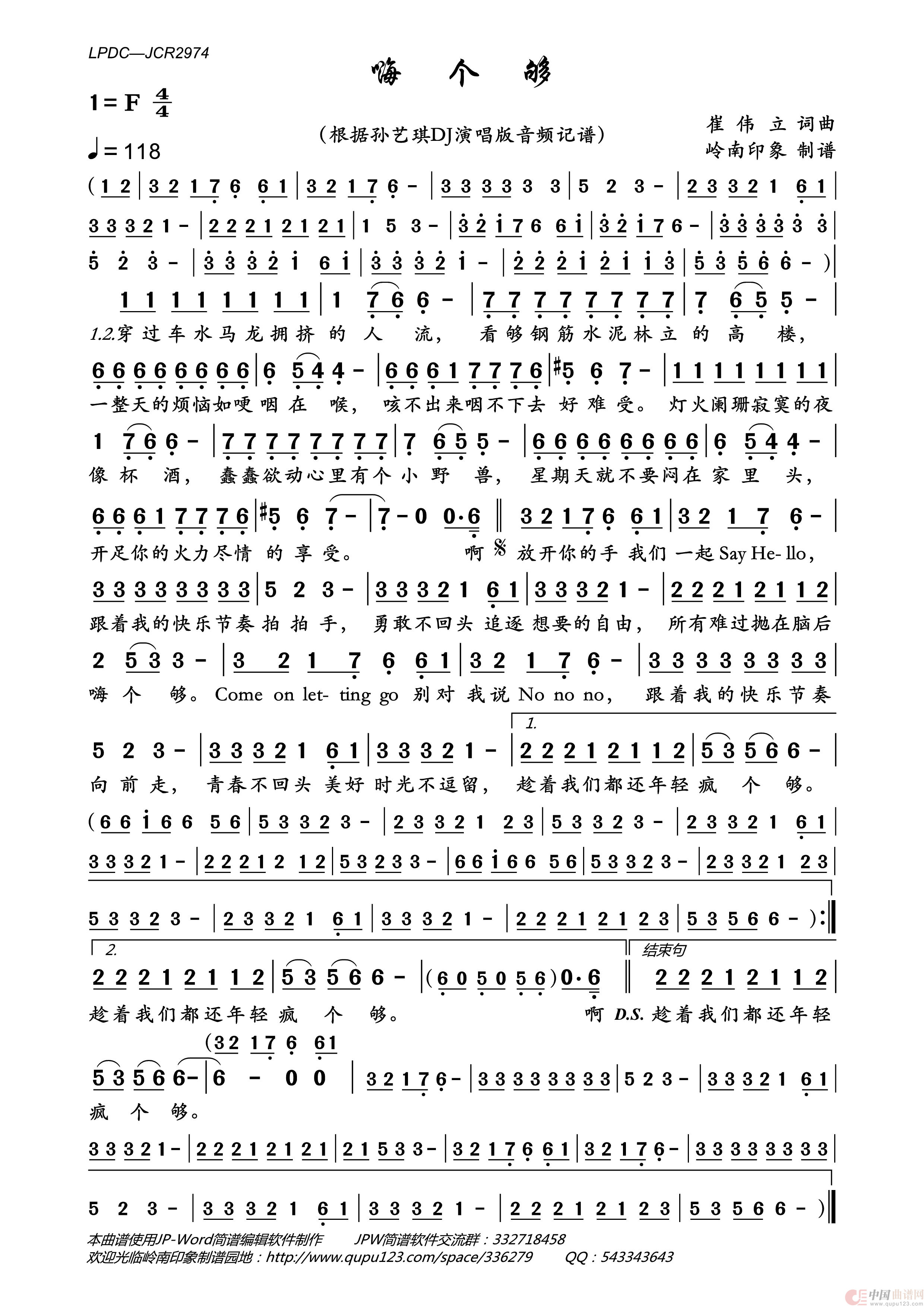 《嗨个够》文本歌词