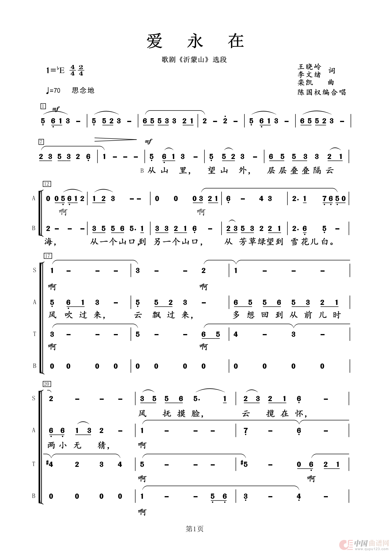 爱永在(四声部合唱谱)