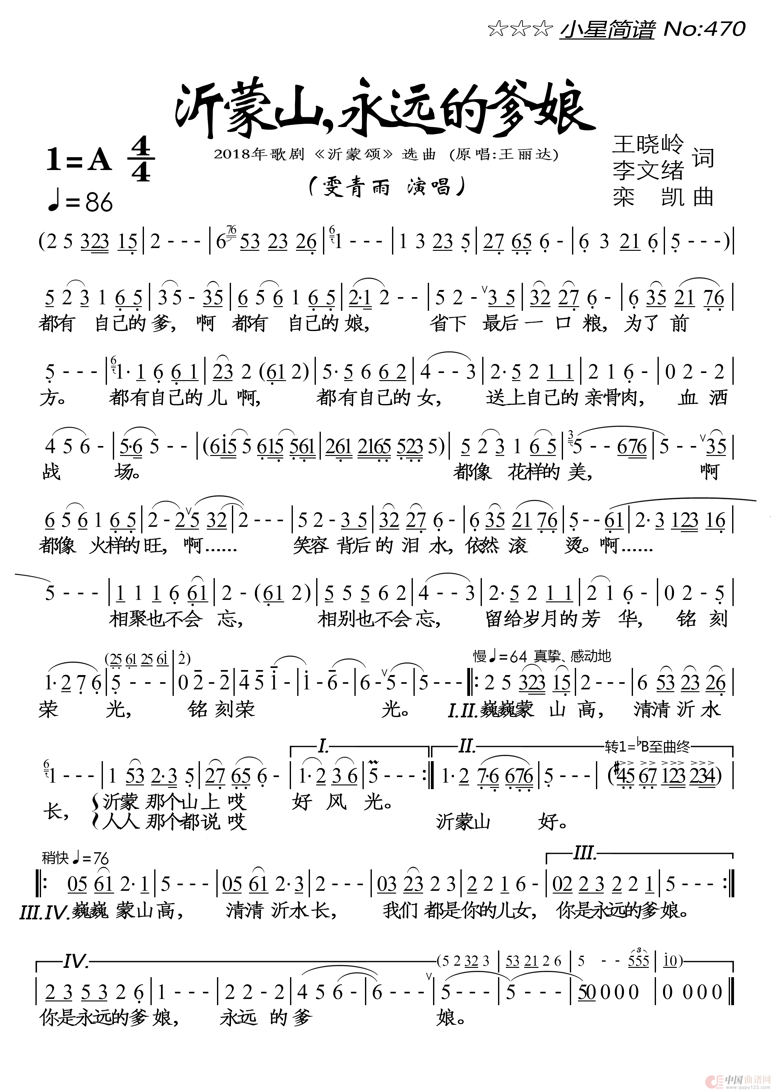关于《沂蒙山,永远的爹娘》曲谱的评论