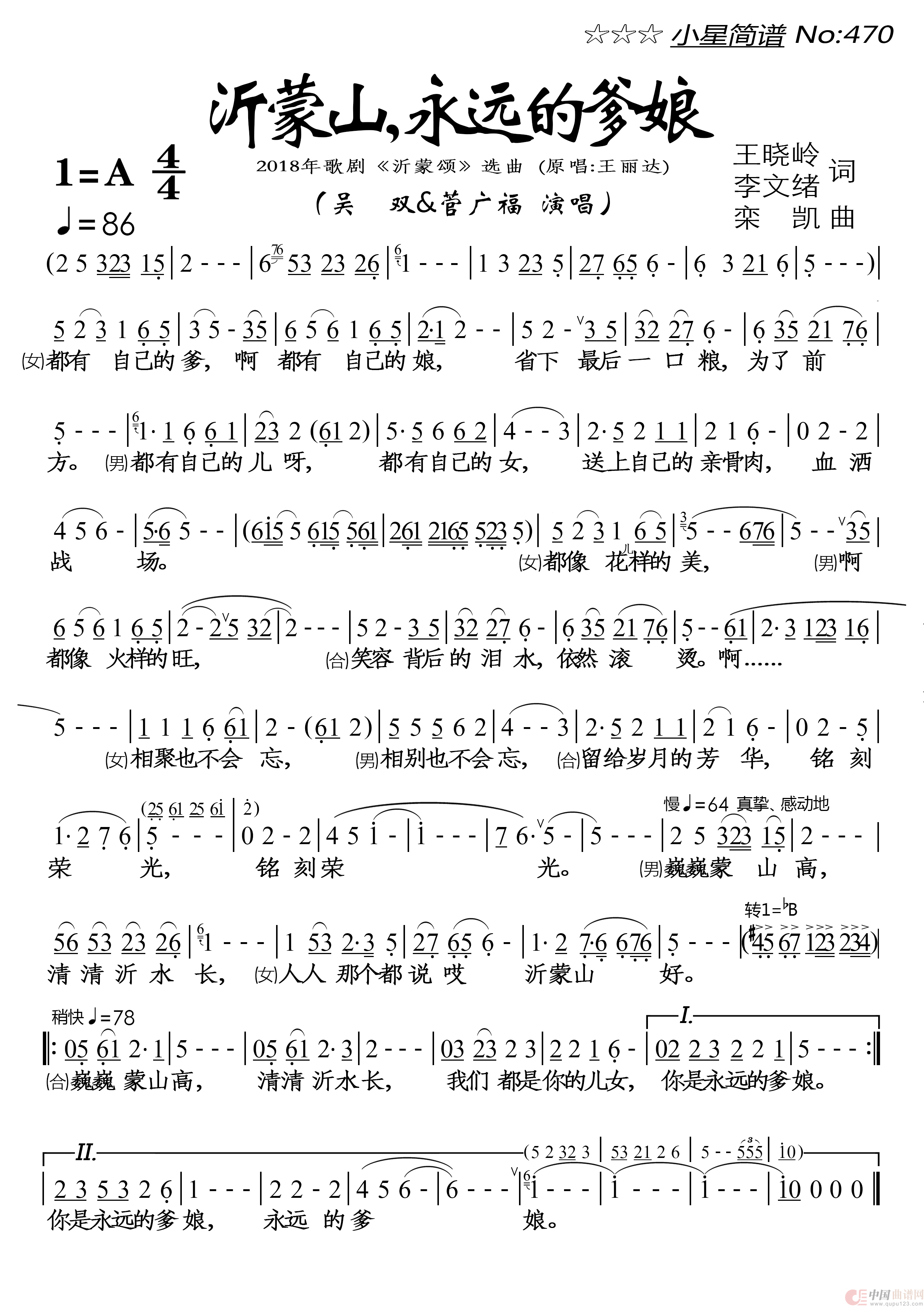关于《沂蒙山,永远的爹娘》曲谱的评论