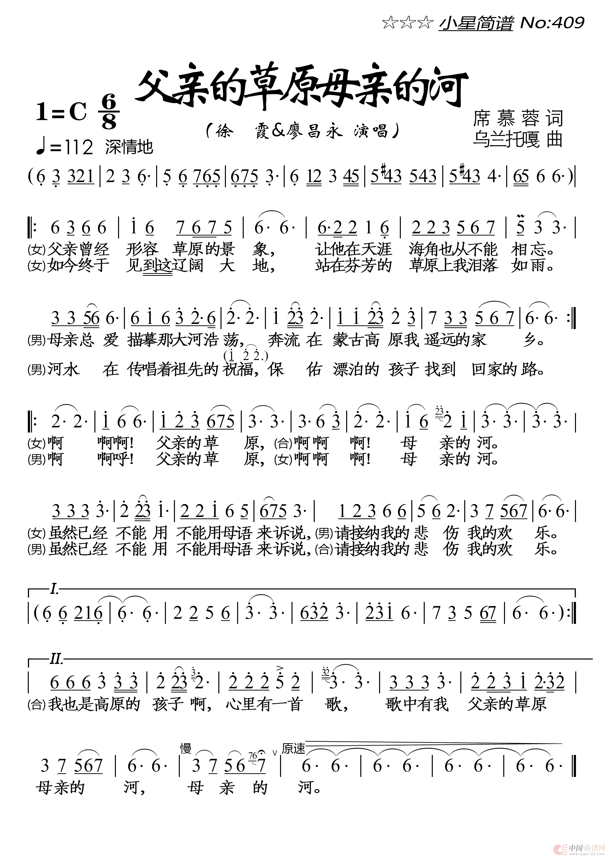 关于《父亲的草原母亲的河》曲谱的评论