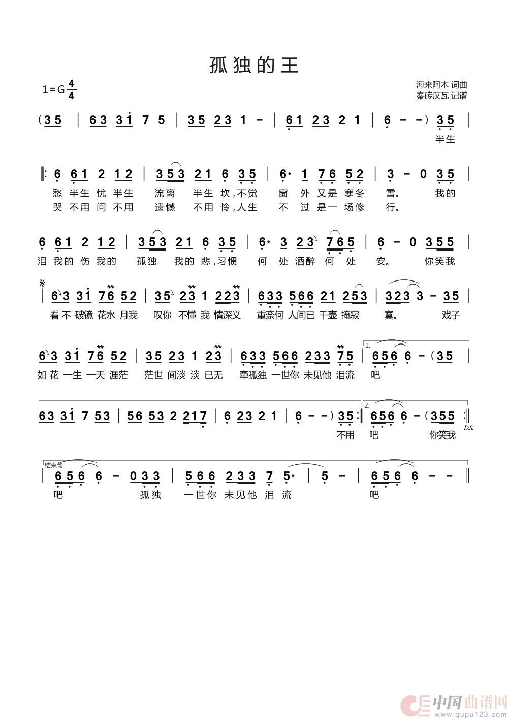 提示:在曲谱图片上单击右键,选择"图片另存为..."即可将曲谱保存到您的电脑中,打印时候可将图片插入到WORD中,调整合适大小打印即可。