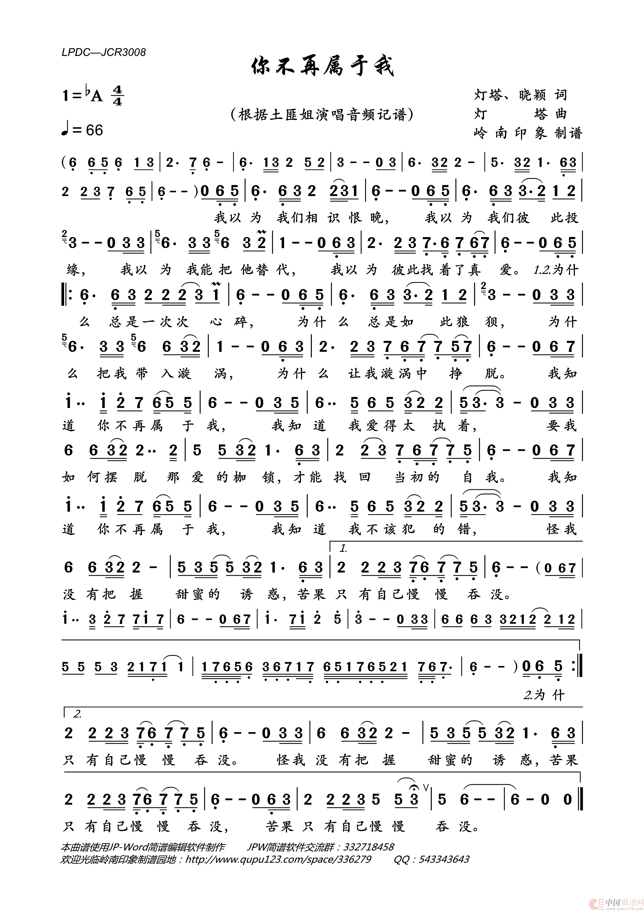 《你不再属于我》文本歌词