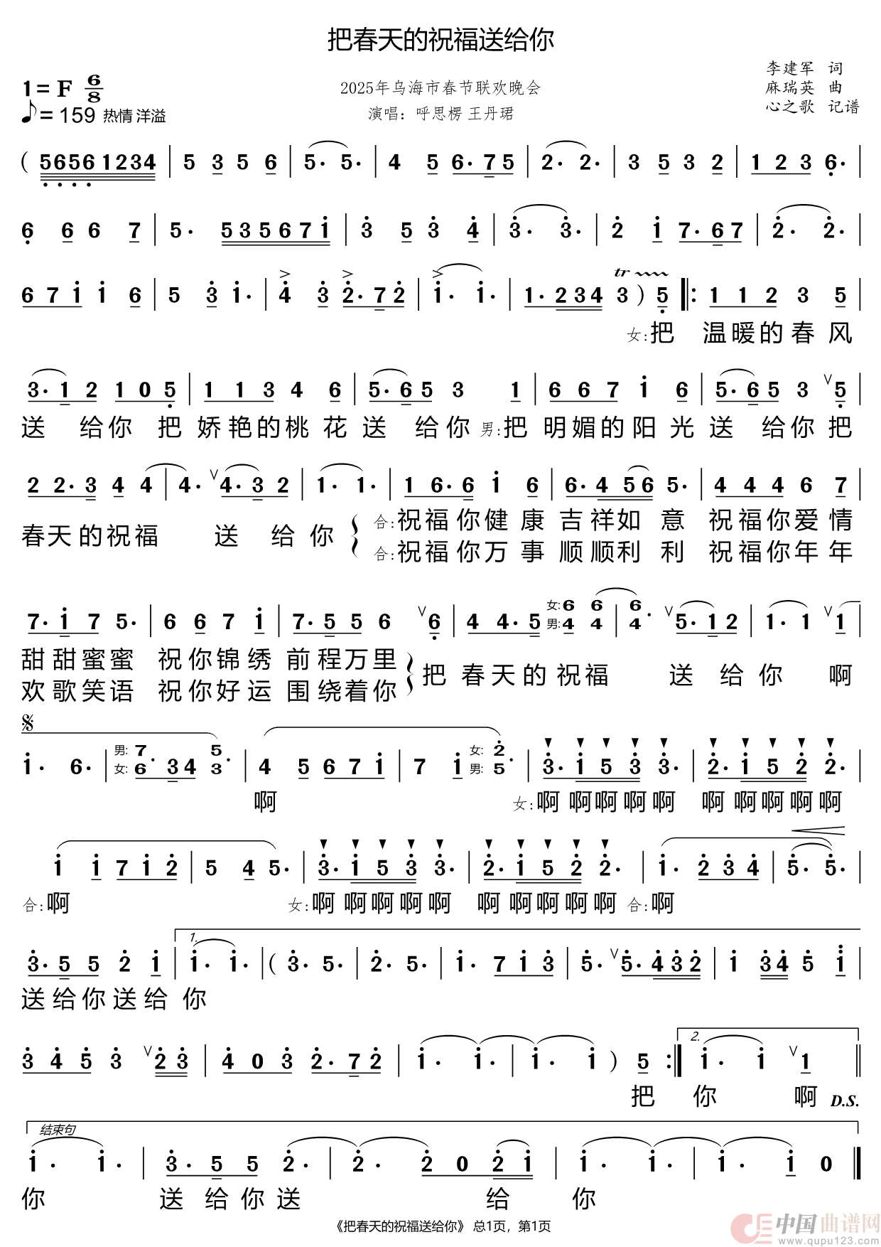 关于《把春天的祝福送给你》曲谱的评论