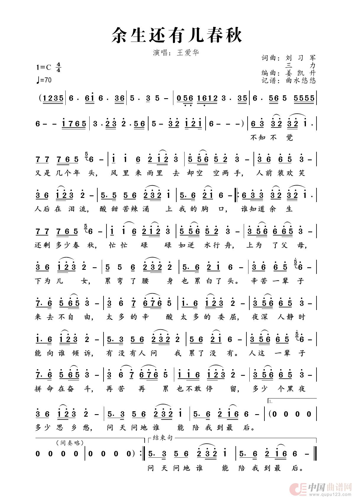 关于《余生还有几春秋》曲谱的评论