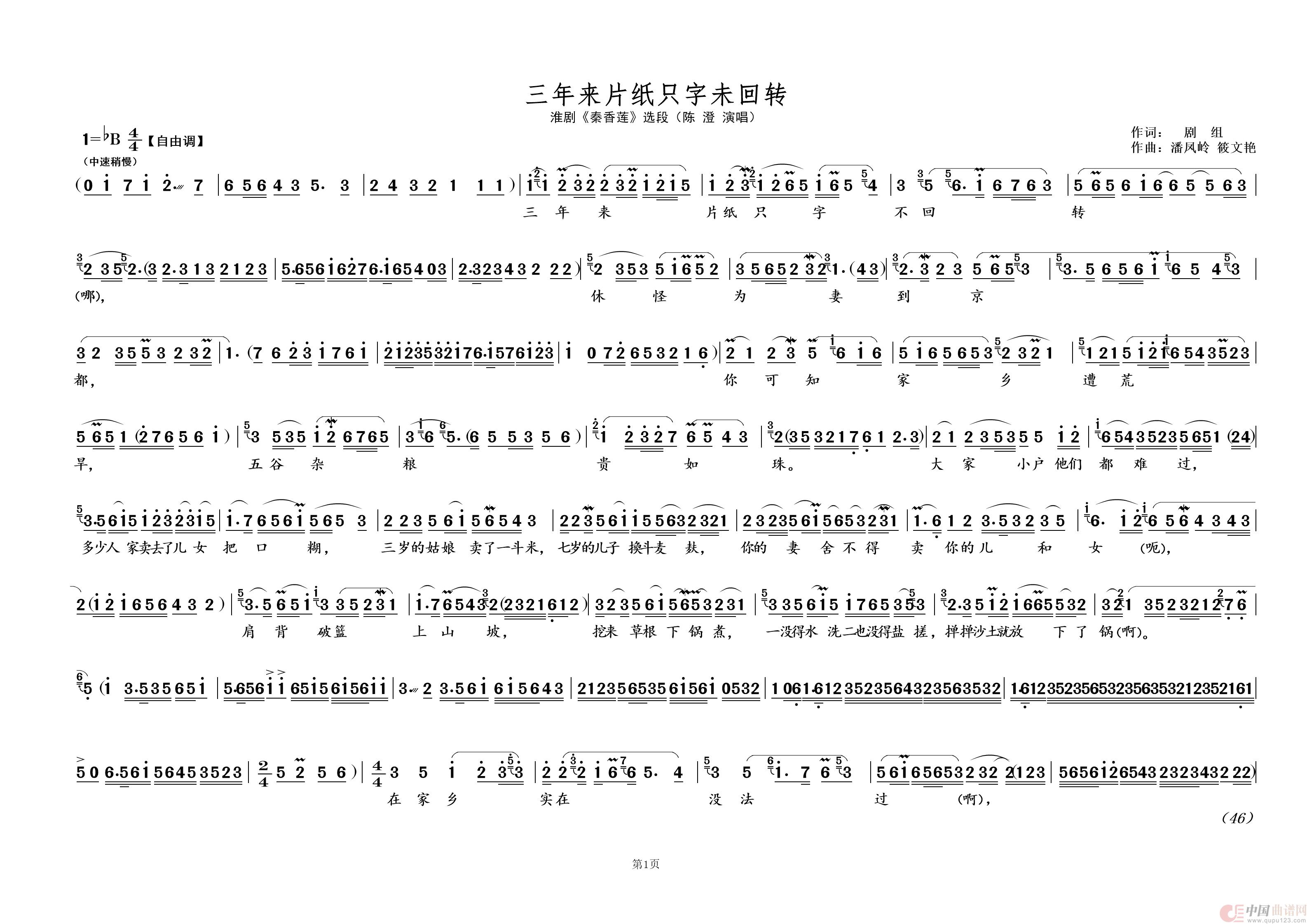 三年来片纸只字未回转①(淮剧 · 陈派澄腔)