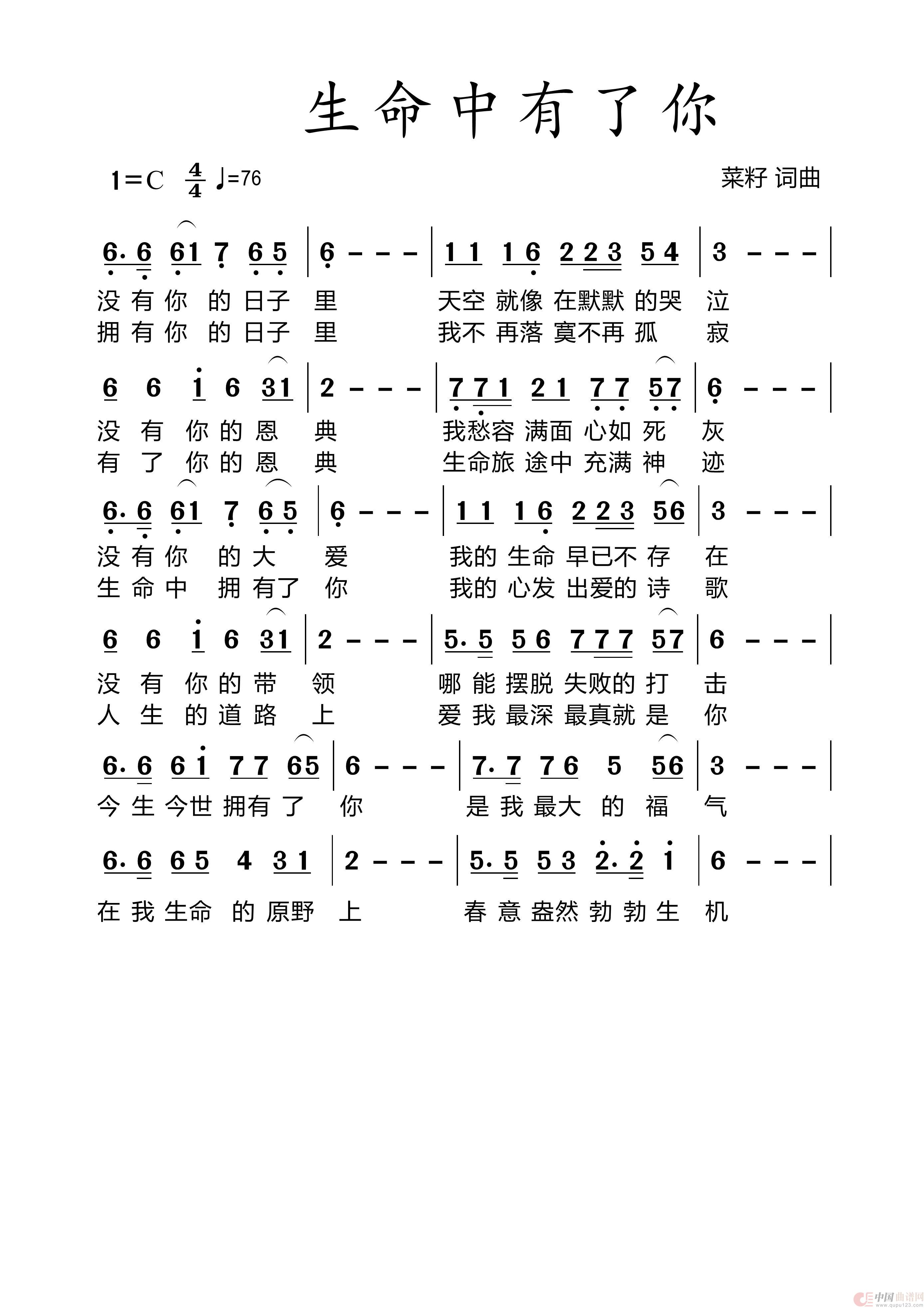 关于《61生命中有了你》曲谱的评论