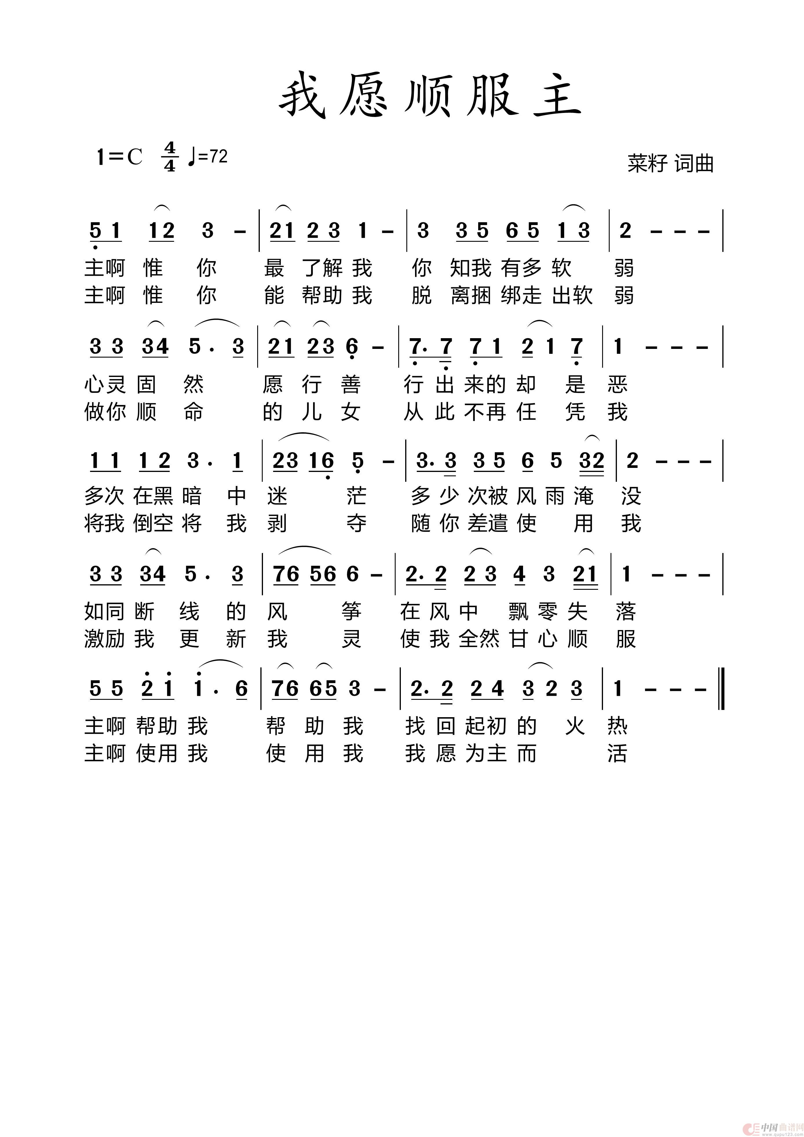 关于《76我愿顺服主》曲谱的评论