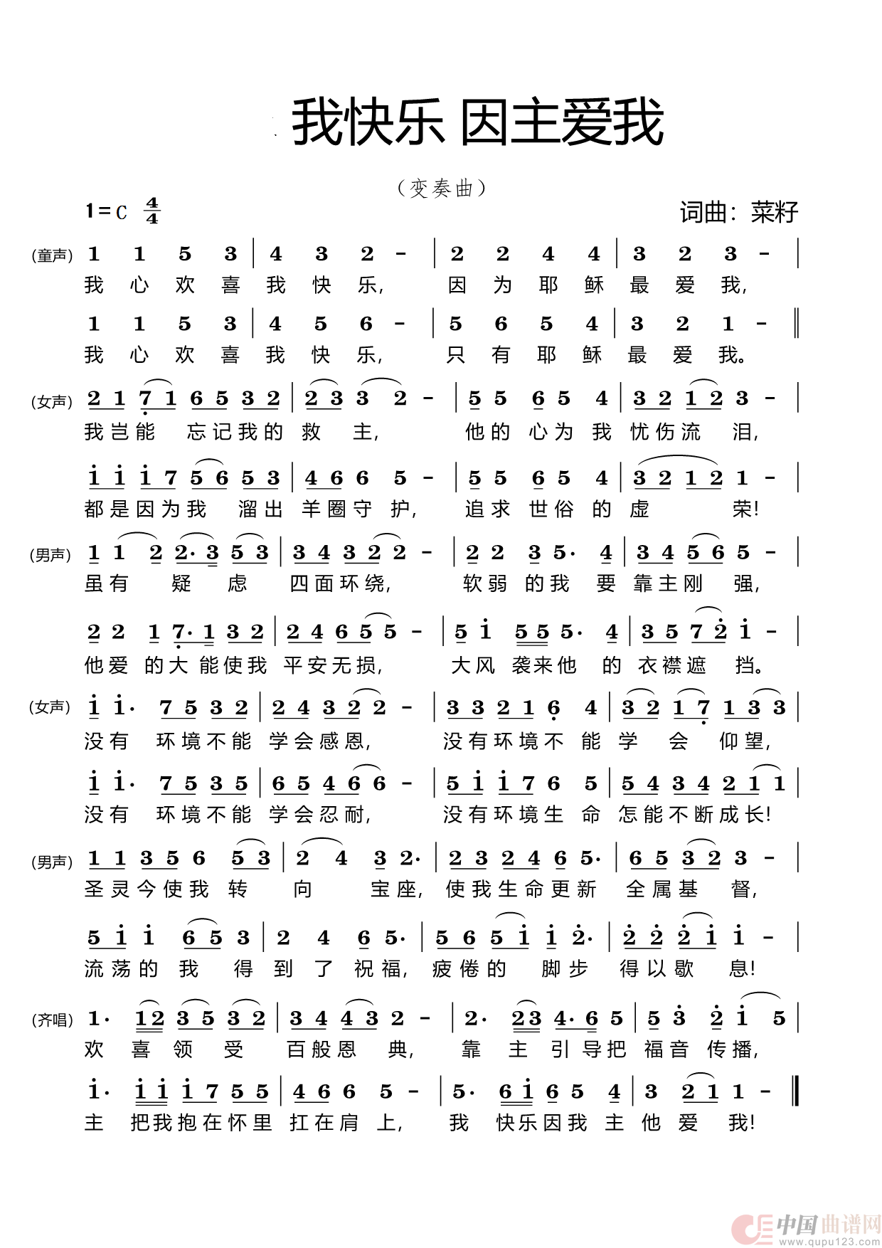 关于《92我快乐因主爱我(变奏曲)》曲谱的评论