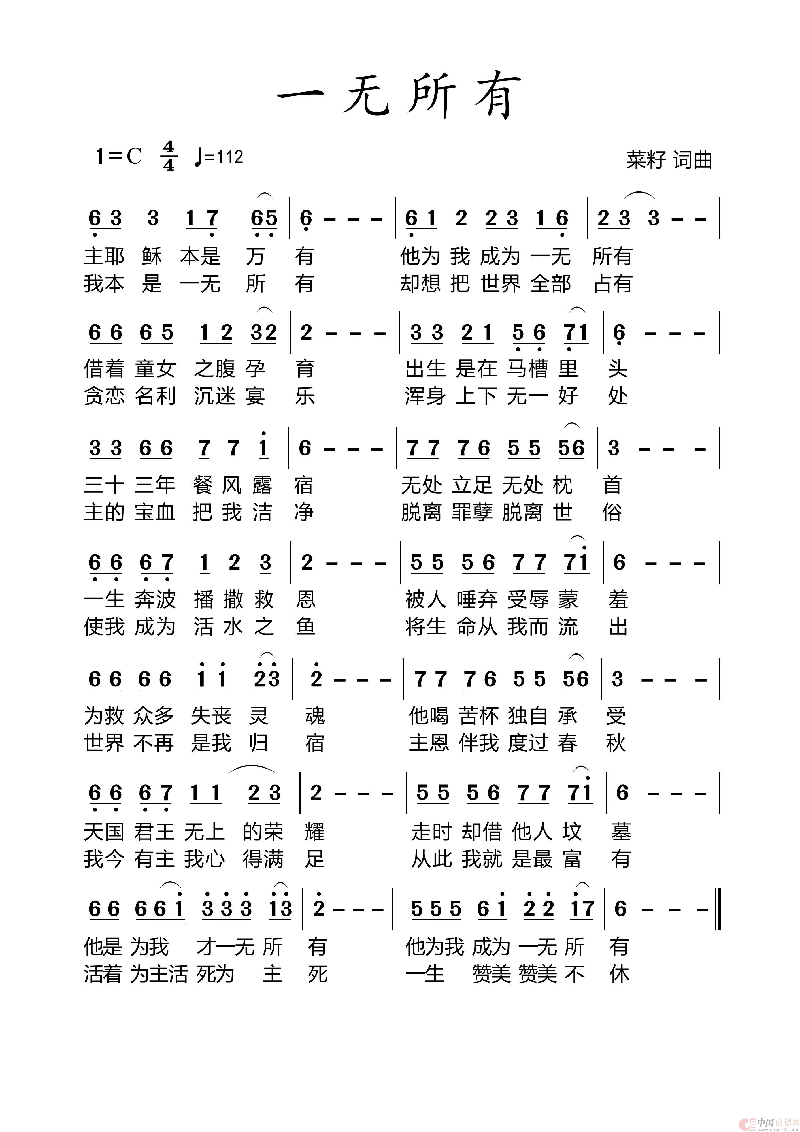 关于《109一无所有》曲谱的评论