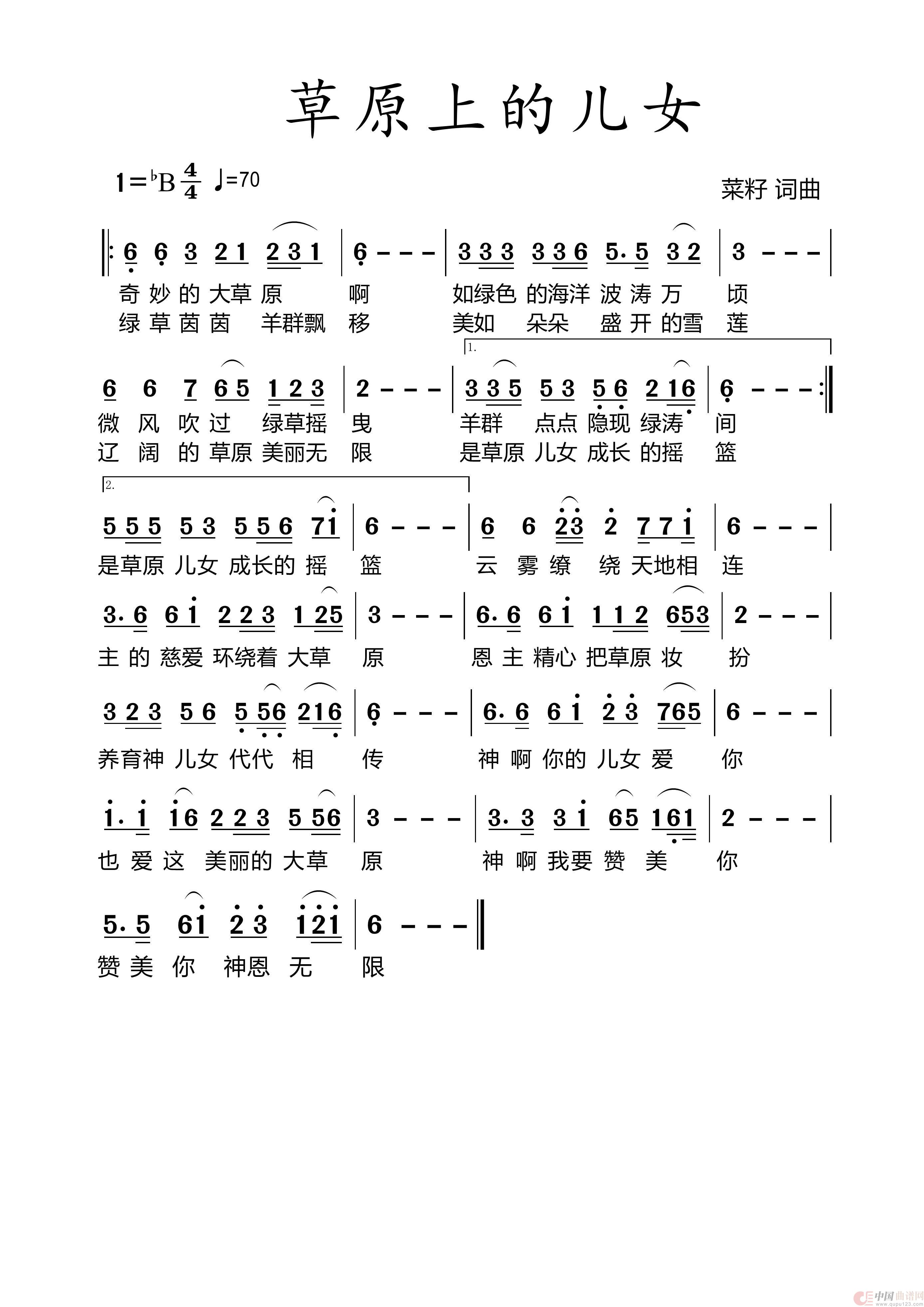 关于《151草原上的儿女》曲谱的评论