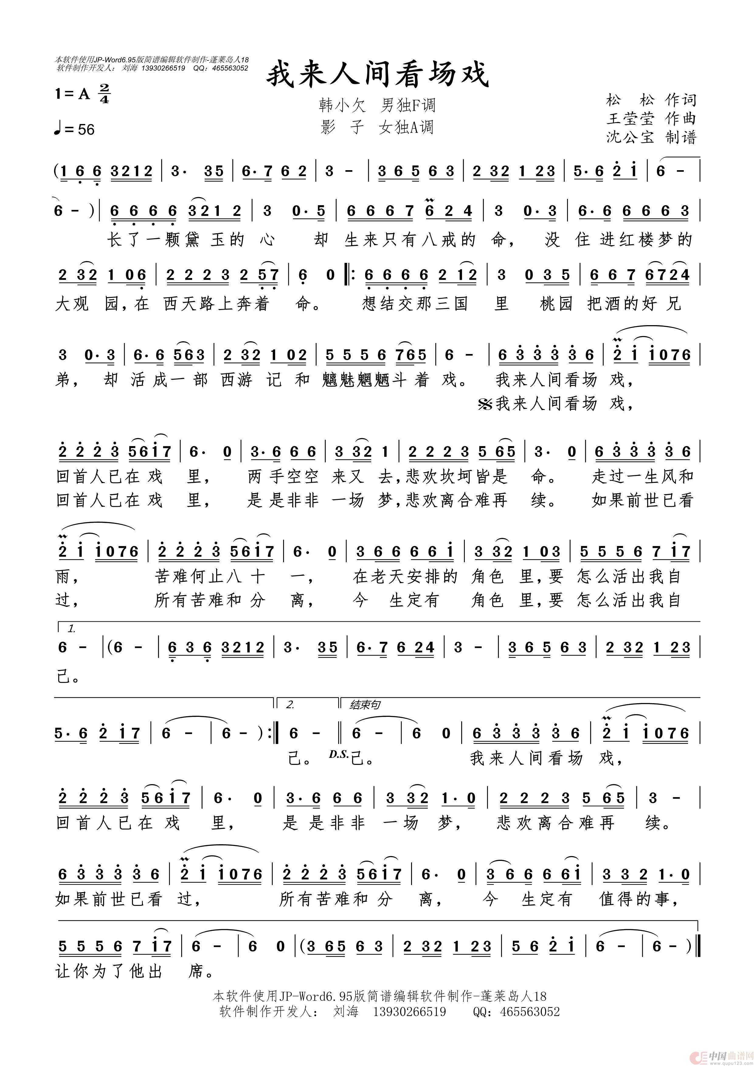 关于《我来人间看场戏》曲谱的评论