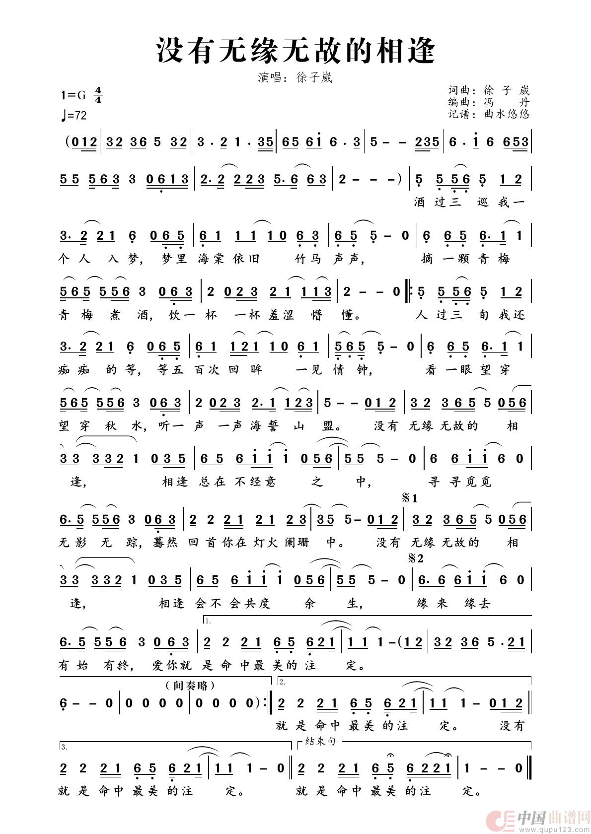 关于《没有无缘无故的相逢》曲谱的评论