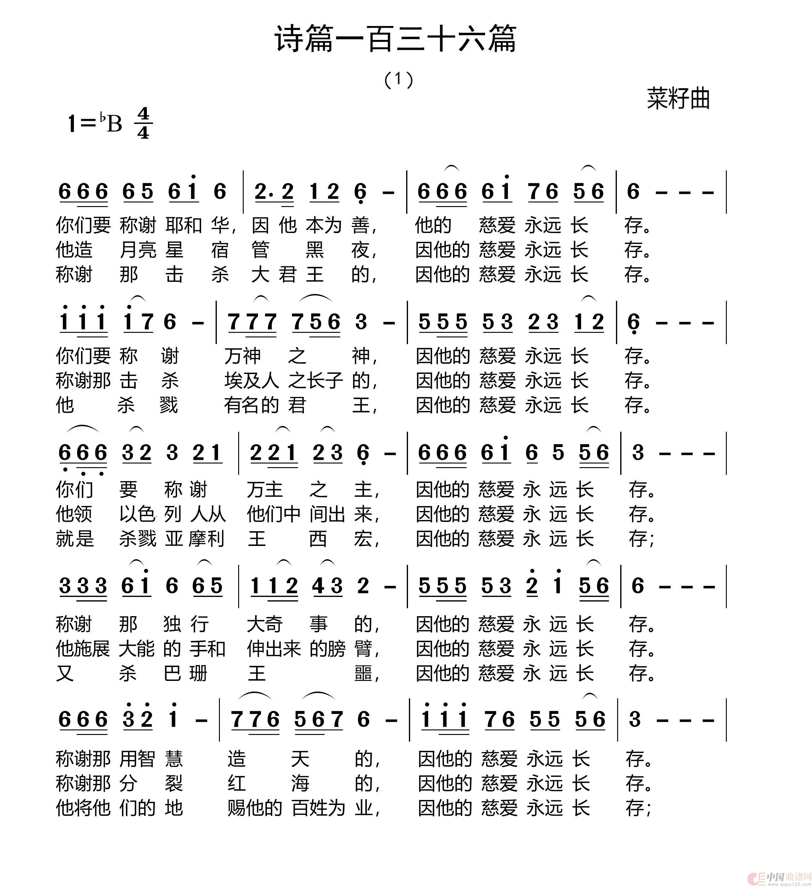关于《336诗篇第136篇》曲谱的评论