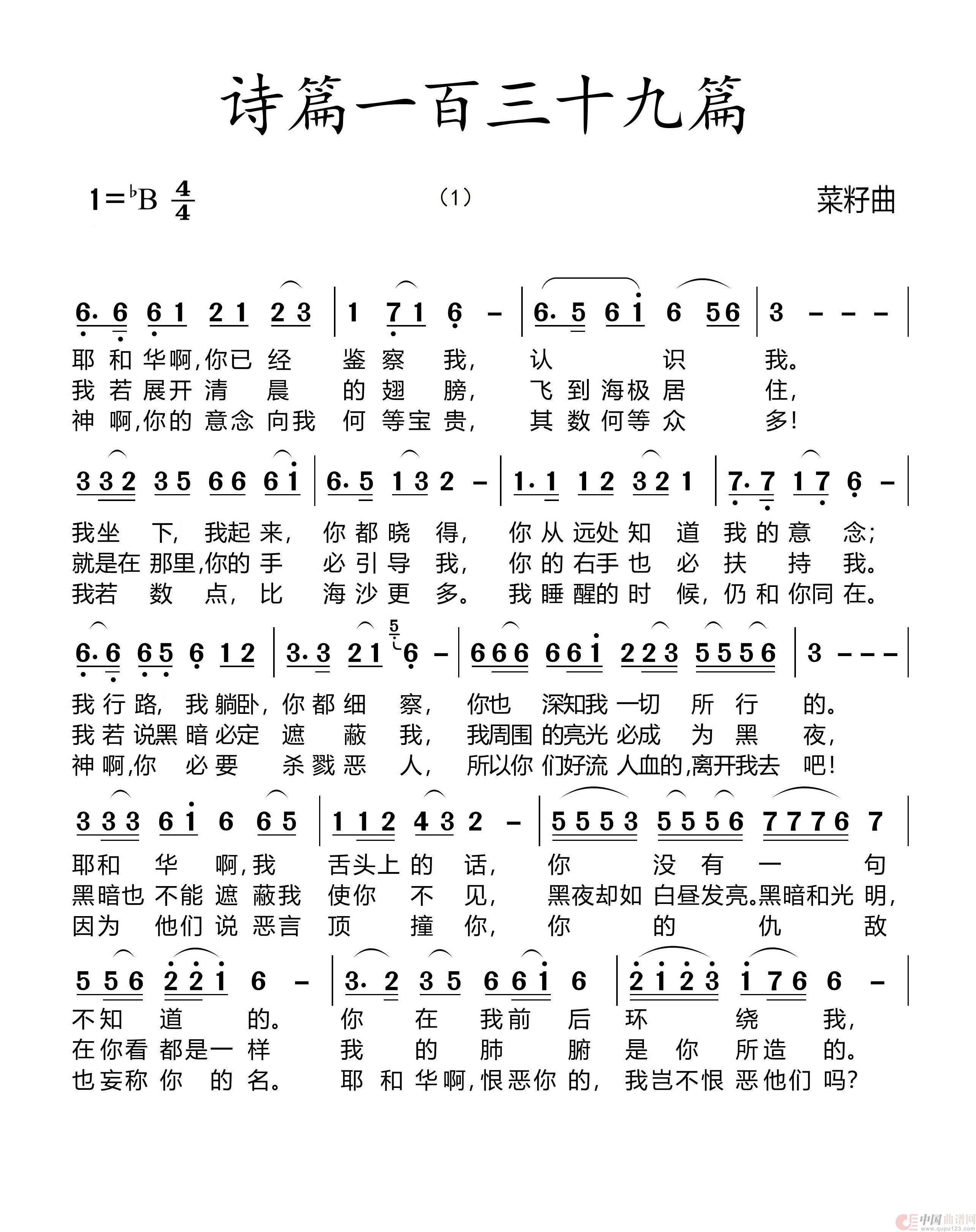 关于《339诗篇第139篇》曲谱的评论