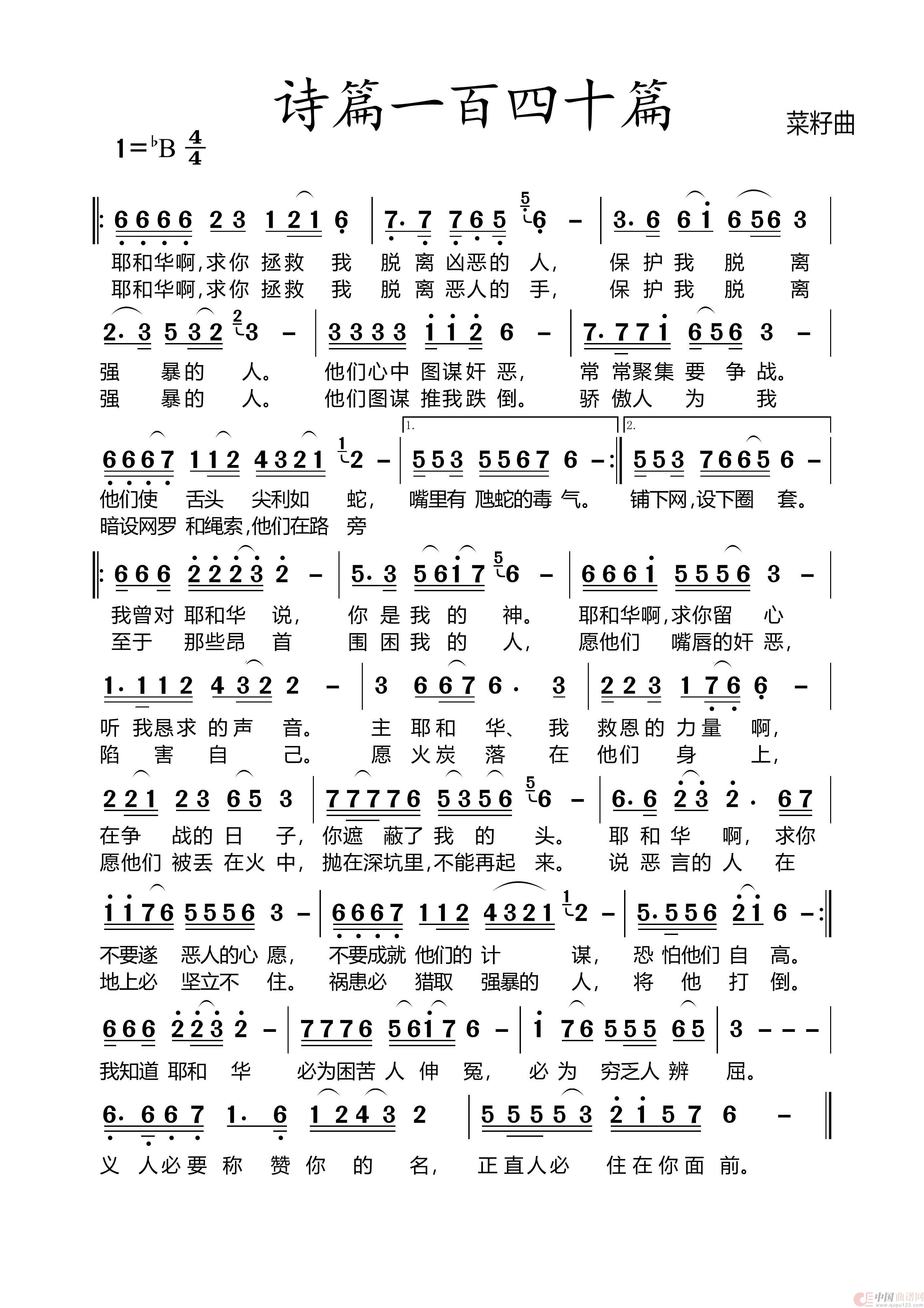关于《340诗篇第140篇》曲谱的评论