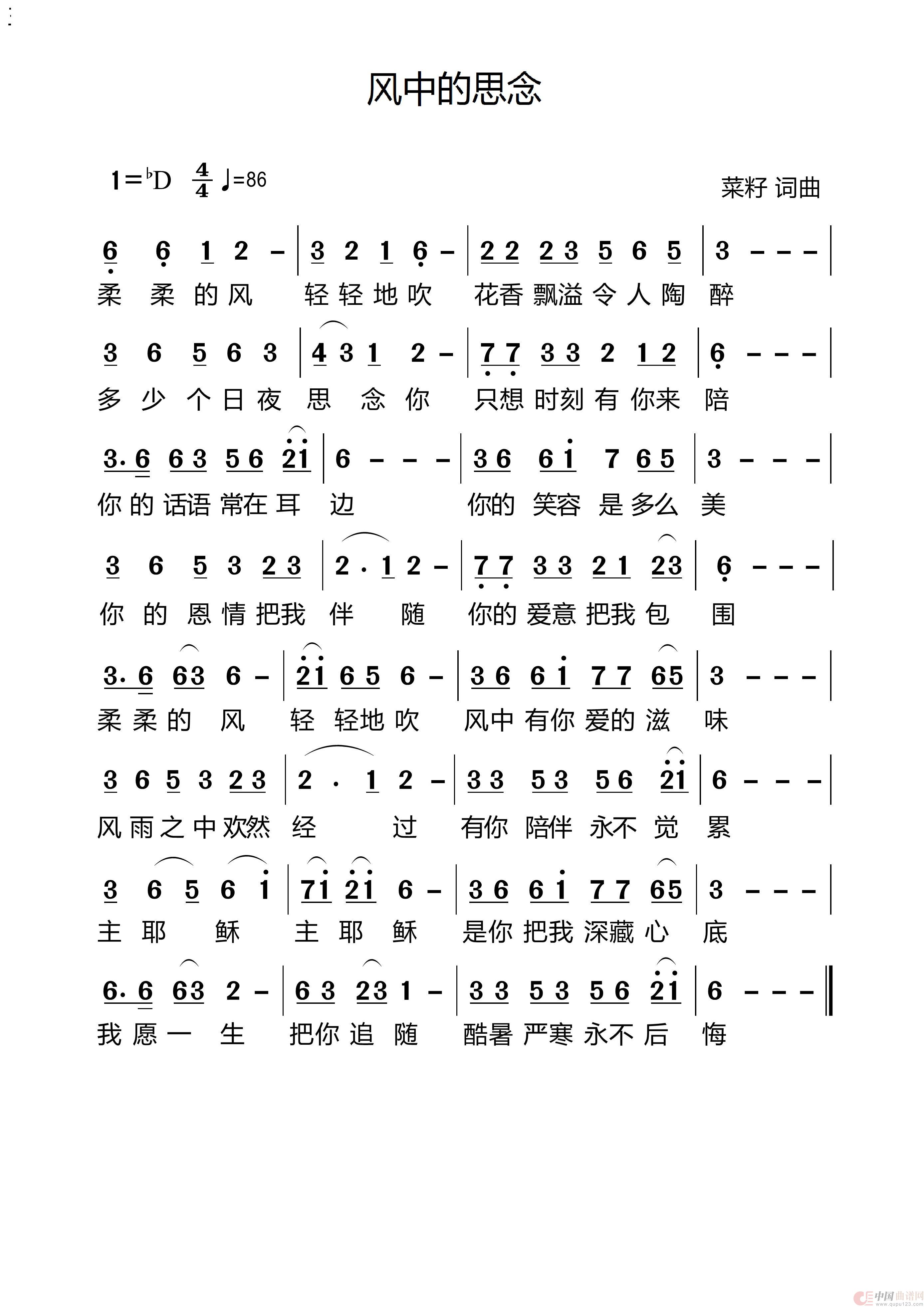 关于《387风中的思念》曲谱的评论