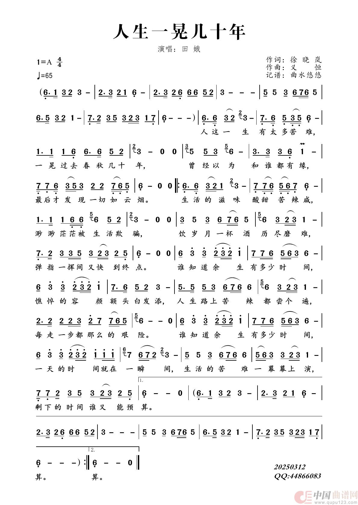 关于《人生一晃几十年》曲谱的评论