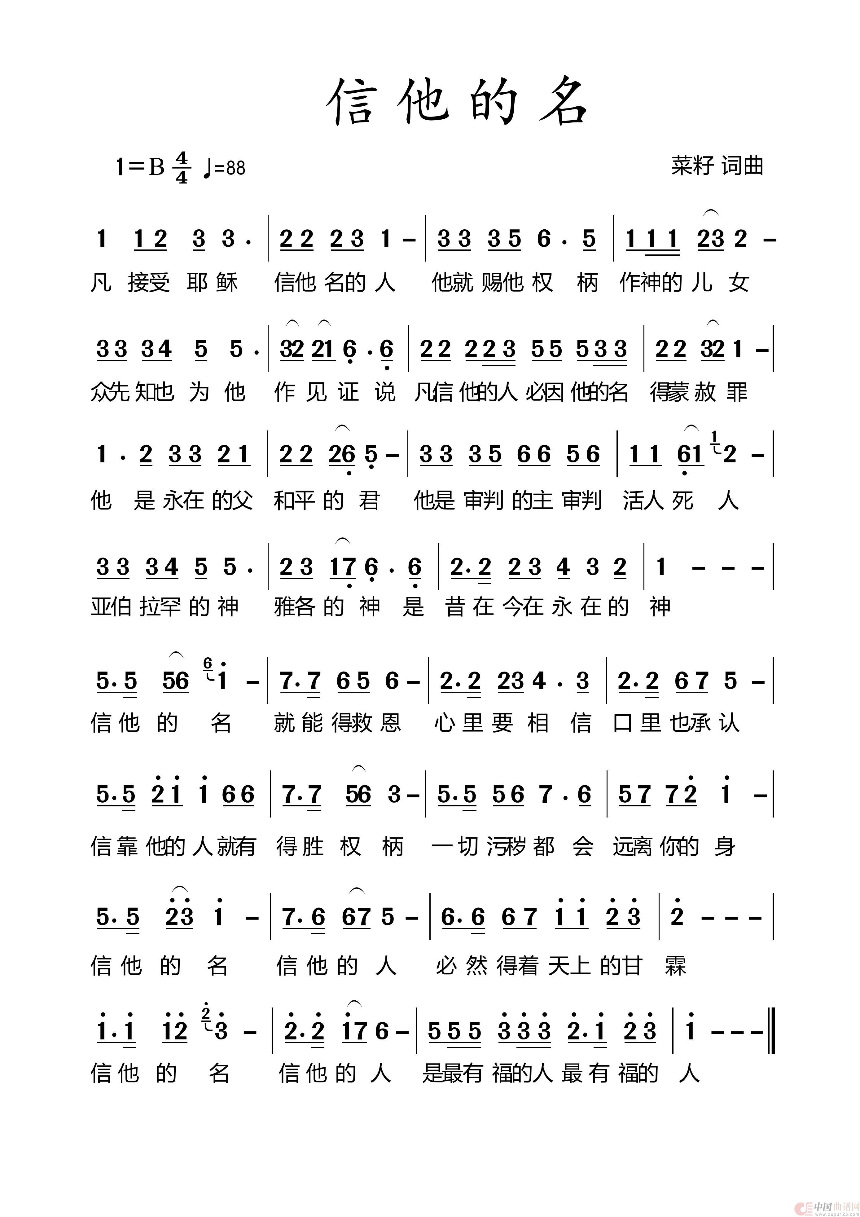 关于《539 信他的名》曲谱的评论