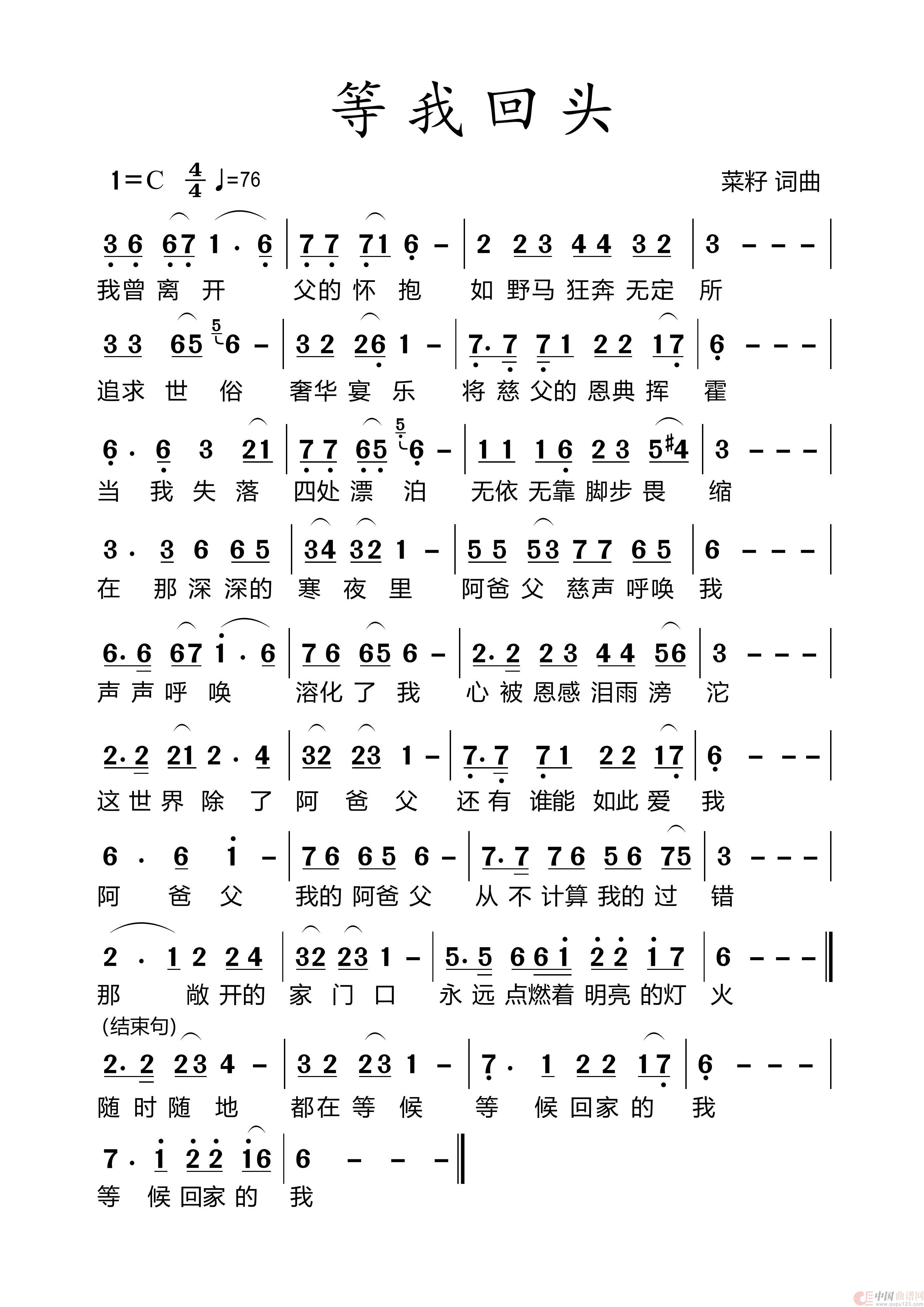 关于《552等我回头》曲谱的评论